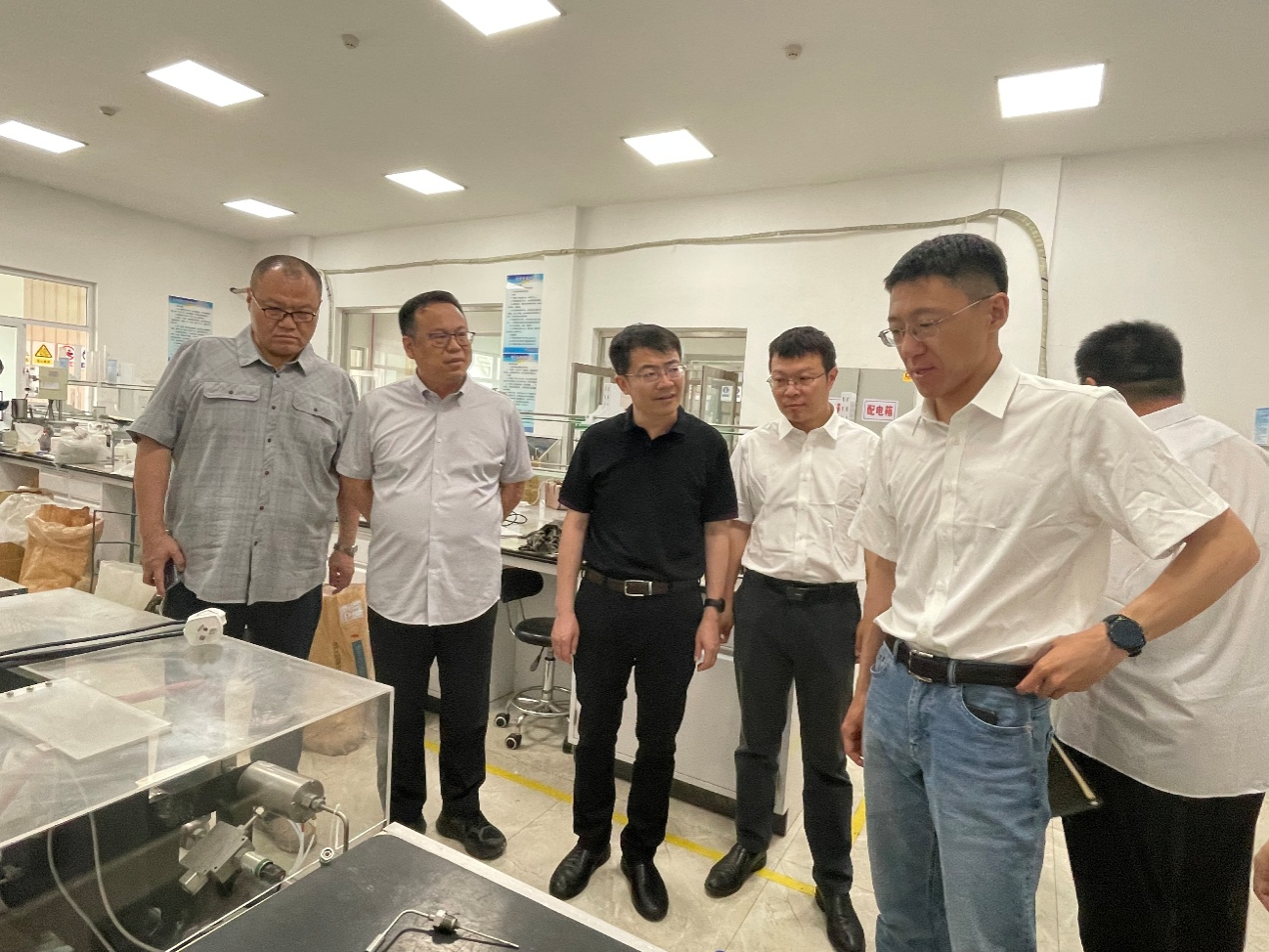 揭牌儀式后,高小明一行參觀了渤海鉆探第一固井公司工程技術(shù)研發(fā)中心實(shí)驗(yàn)室和自研產(chǎn)品展廳。