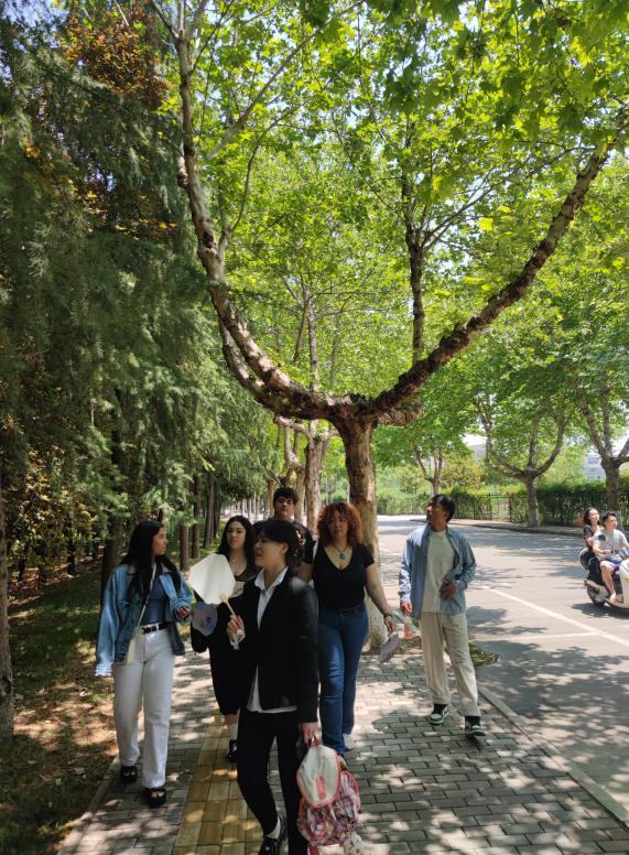 之后,美國學(xué)生漫步校園,感受中式建筑與現(xiàn)代校園風(fēng)貌的交融,中美學(xué)生相互分享各自的校園生活、文化習(xí)俗,碰撞出多元文化交流的火花,結(jié)下了深厚友誼。