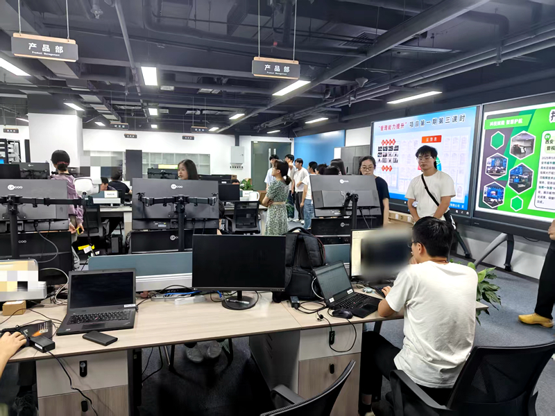 在座談會上,劉偉杰對師生一行表示熱烈歡迎,他介紹了公司發(fā)展歷程、業(yè)務(wù)布局、人才需求等,并對企業(yè)在智慧安防、大數(shù)據(jù)應(yīng)用等方面的最新進(jìn)展進(jìn)行了說明。王雨嫣表示企業(yè)高度重視與高校合作,期待通過校企協(xié)同,培養(yǎng)適應(yīng)數(shù)字化轉(zhuǎn)型需求的復(fù)合型人才。與會老師分別介紹了各自學(xué)院在專業(yè)設(shè)置、人才培養(yǎng)、科學(xué)研究等方面情況,希望校企雙方加強(qiáng)溝通交流,發(fā)揮各自資源優(yōu)勢,在人才培養(yǎng)、科學(xué)研究、實(shí)習(xí)就業(yè)等方面開展進(jìn)一步合作。隨后,工作人員帶領(lǐng)師生參觀了企業(yè)展廳,重點(diǎn)介紹了項(xiàng)目大事紀(jì)墻、榮譽(yù)資質(zhì)展區(qū)、戰(zhàn)略情況及西安市“雪亮工程”階段建設(shè)成果?;顒幼詈?,部分同學(xué)表達(dá)了就業(yè)意向并提交了簡歷。