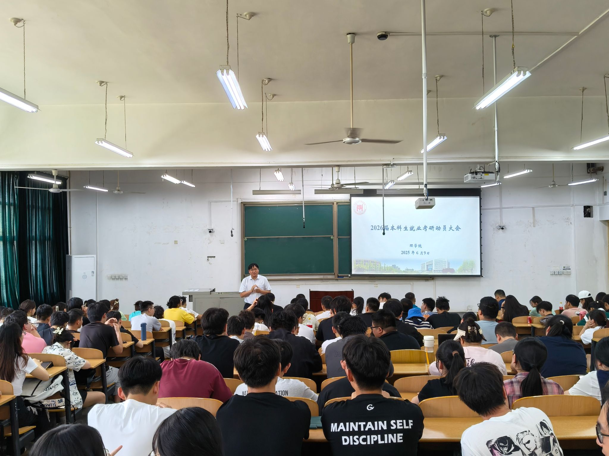 為扎實做好2026屆本科生就業(yè)考研工作,助力學生明確職業(yè)目標,提升就業(yè)和考研競爭力,6月9日,理學院在鄠邑校區(qū)博思樓B125教室召開2026屆畢業(yè)生就業(yè)考研動員大會。學院院長折延宏,黨委副書記楊富民出席大會,應用物理系副主任丁繼軍、應用數(shù)學系副主任馬儇龍以及2026屆全體本科畢業(yè)生參加大會。會議由學生工作辦公室副主任龐波主持。