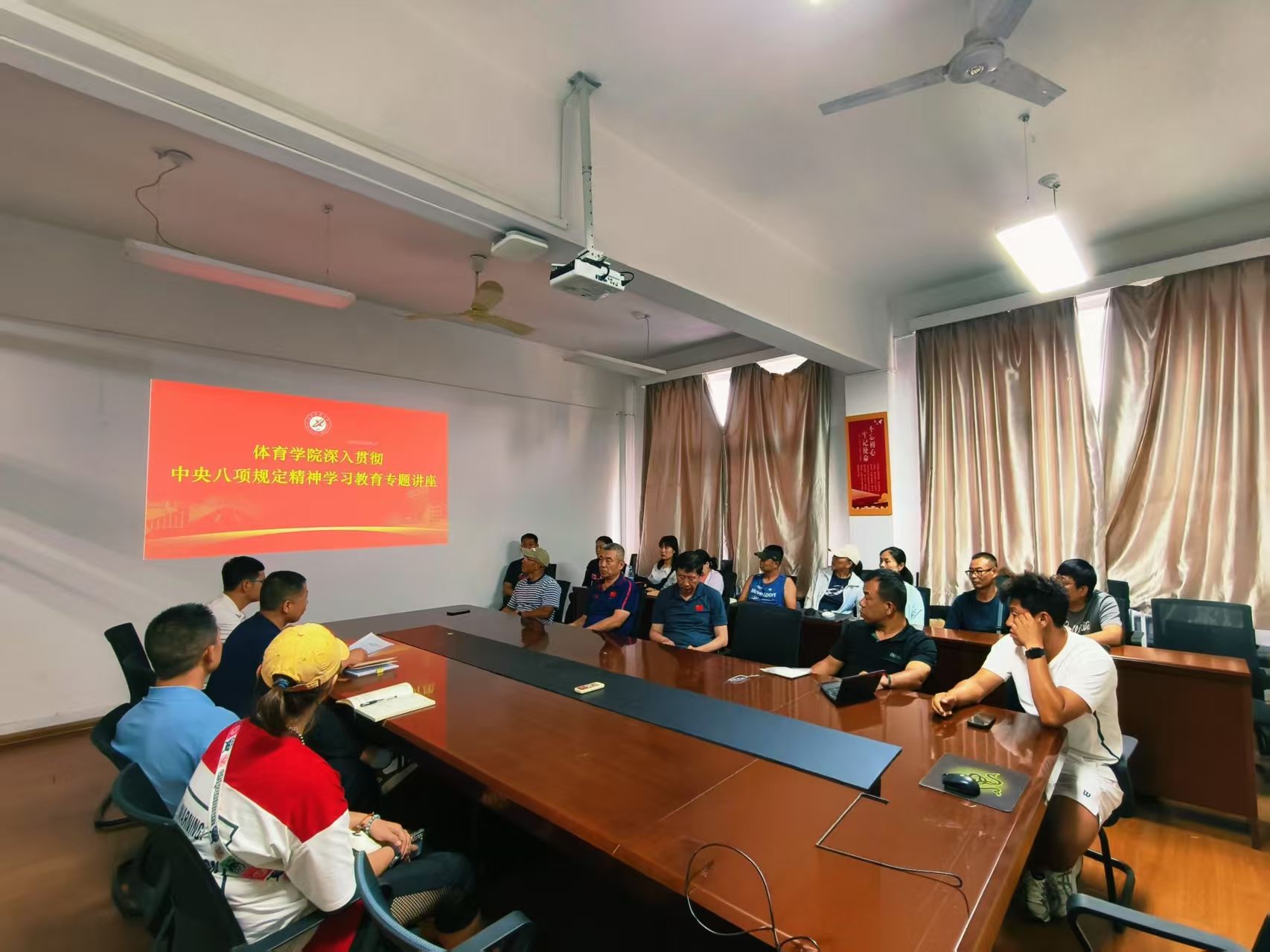 6月8日,全體教工黨員在華油能源樓733室針對本次主題黨日活動進行感悟分享,黨員代表結合中央八項規(guī)定精神和自身工作實際,暢談如何在日常工作生活中嚴守紀律紅線,以優(yōu)良作風推動體育教學、教學管理、學生管理等工作高質量發(fā)展。同時緊密結合作風建設,暢談怎樣加強廉潔自律、嚴守師德規(guī)范,營造風清氣正的校園環(huán)境。