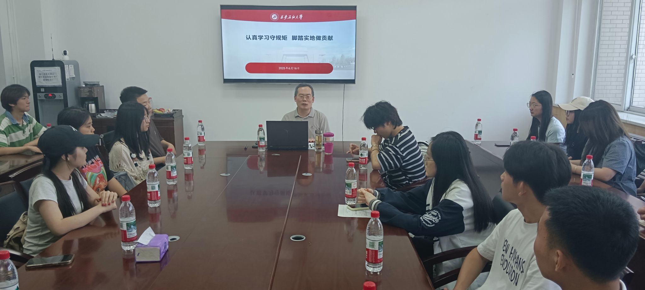 為推動深入貫徹中央八項規(guī)定精神學(xué)習(xí)教育走深走實,6月16日下午,外國語學(xué)院黨委書記張建高以“認(rèn)真學(xué)習(xí)守規(guī)矩 腳踏實地做貢獻”為主題,在鄠邑校區(qū)崇文樓314會議室為2025屆畢業(yè)班黨員講授專題黨課。