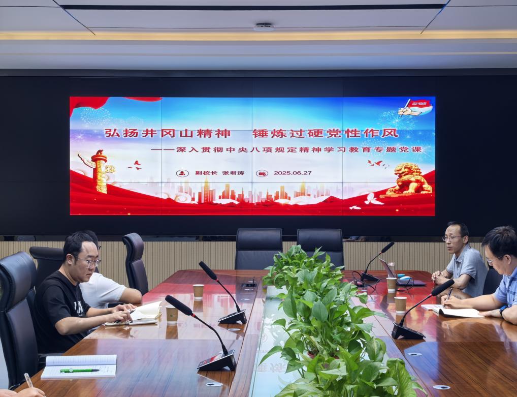 為深入貫徹落實(shí)中央八項(xiàng)規(guī)定精神,2025年6月27日上午,副校長(zhǎng)張君濤以“弘揚(yáng)井岡山精神,錘煉過硬黨性作風(fēng)”為主題,在鄠邑校區(qū)博覽樓116室為教務(wù)處黨支部全體黨員講授專題黨課。
