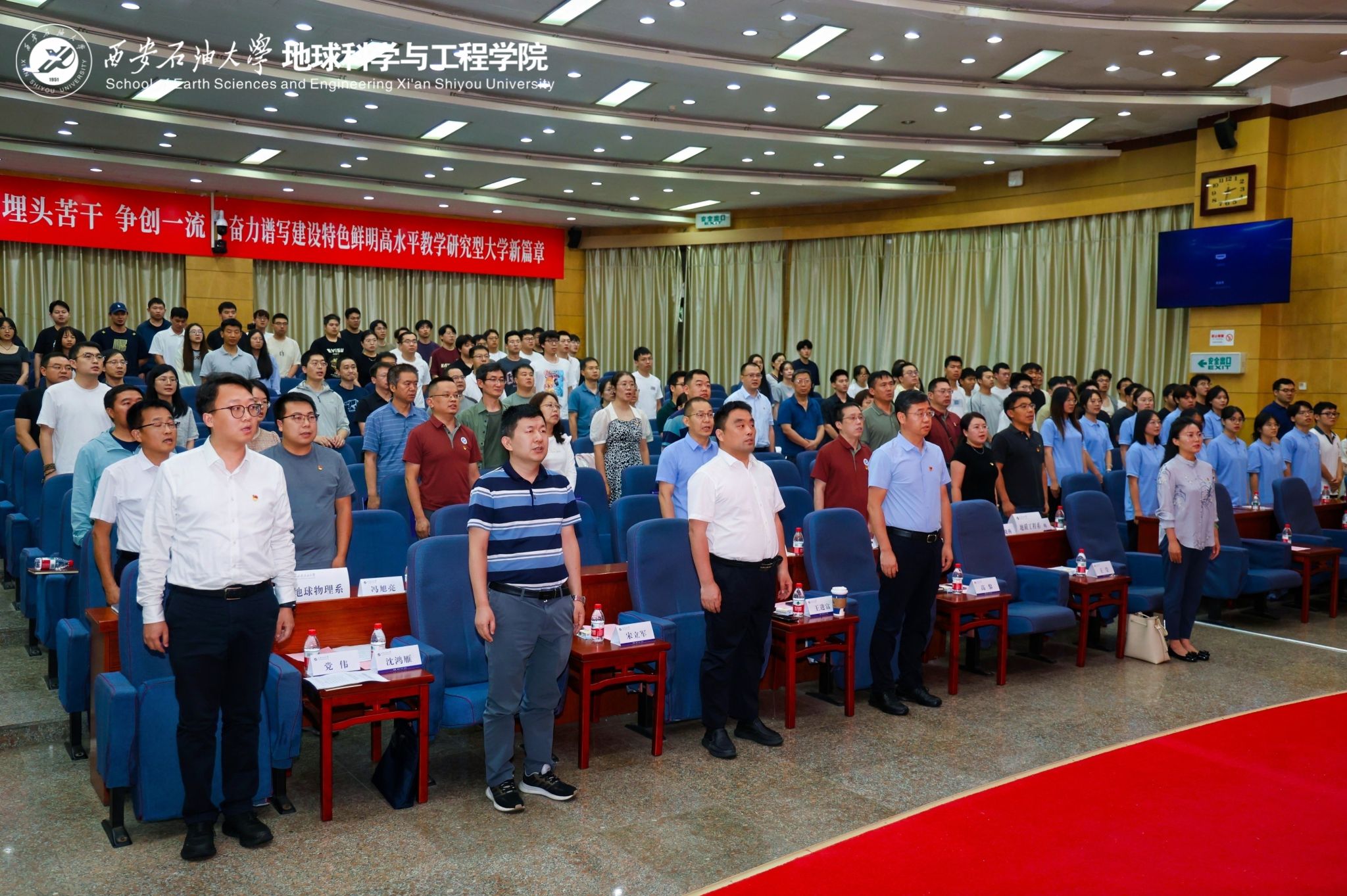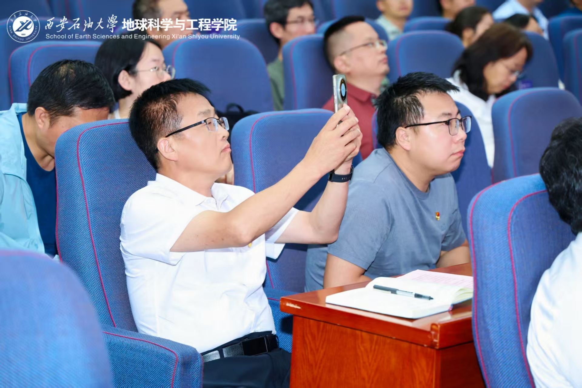 在慶祝中國共產(chǎn)黨成立104周年,深入貫徹中央八項(xiàng)規(guī)定精神學(xué)習(xí)教育走深走實(shí)和貫徹落實(shí)學(xué)?!叭齻€(gè)年”建設(shè)部署之際,6月30日下午,地球科學(xué)與工程學(xué)院黨委在雁塔校區(qū)學(xué)術(shù)報(bào)告廳舉行“智慧教育 你我同行”同上一堂思政課暨深入貫徹中央八項(xiàng)規(guī)定精神學(xué)習(xí)教育主題黨日活動(dòng)。校黨委副書記、校長王進(jìn)富出席活動(dòng)并講授思政課暨學(xué)習(xí)教育專題黨課。學(xué)院黨政領(lǐng)導(dǎo)班子成員,黨委委員、理論學(xué)習(xí)中心組成員,各系黨支部書記、主任,師生員工及黨員代表等200余人參加?;顒?dòng)由學(xué)院黨委書記高黎主持。