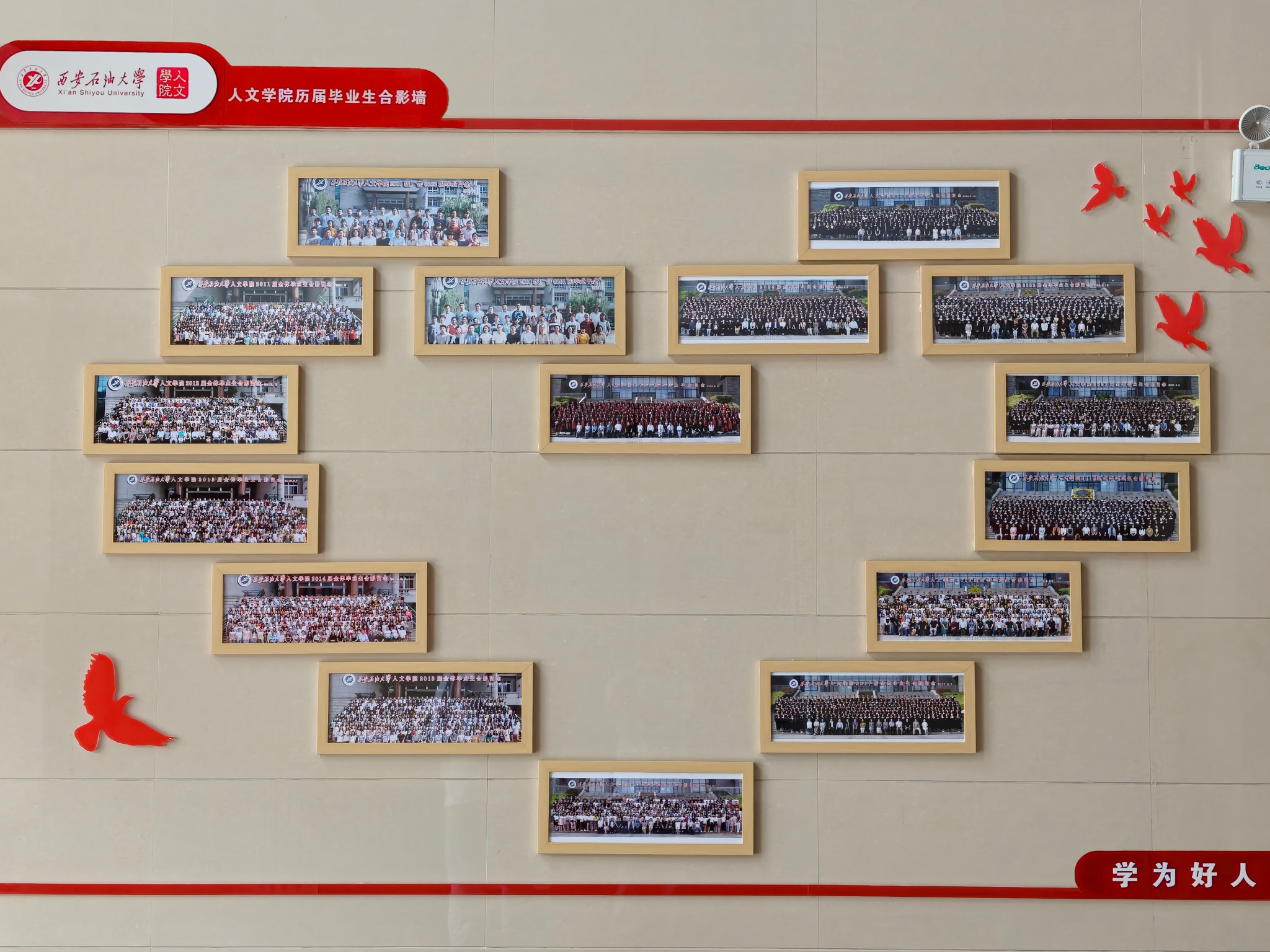 人文學(xué)院傾情打造歷屆畢業(yè)生合影墻 靜候秩年校友“回家”