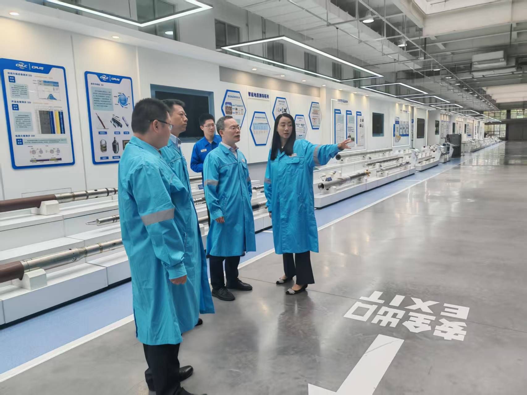 座談會(huì)后,學(xué)院一行參觀了制造公司智能制造車(chē)間和測(cè)井文化展廳,在車(chē)間現(xiàn)場(chǎng)觀摩了智能制造車(chē)間實(shí)際運(yùn)轉(zhuǎn)情況,詳細(xì)了解企業(yè)自主研發(fā)的CPLog測(cè)井成套裝備的應(yīng)用情況;在文化展廳,認(rèn)真了解公司“研發(fā)、制造、服務(wù)、應(yīng)用”四位一體以及黨建和企業(yè)文化等方面所取得的建設(shè)成果。