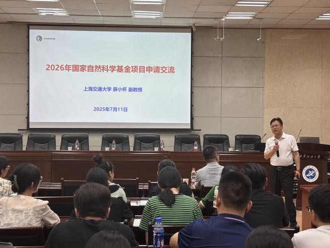 隨后,薛小懷以“2026年國(guó)家自然科學(xué)基金項(xiàng)目申請(qǐng)交流”為題,結(jié)合自身評(píng)審經(jīng)驗(yàn),從國(guó)家自然科學(xué)基金項(xiàng)目申請(qǐng)要做的兩件事、基礎(chǔ)研究的本質(zhì)、自然基金申請(qǐng)的本質(zhì)、自然基金申請(qǐng)中標(biāo)的三個(gè)要素等七個(gè)方面展開,重點(diǎn)介紹了申請(qǐng)基金應(yīng)該注意的關(guān)鍵問題,并圍繞基金申報(bào)與在場(chǎng)師生展開了深入交流。