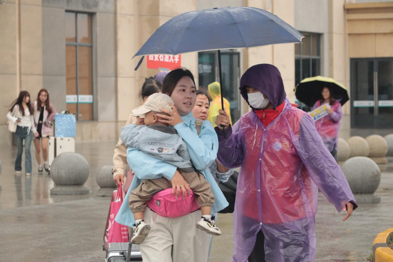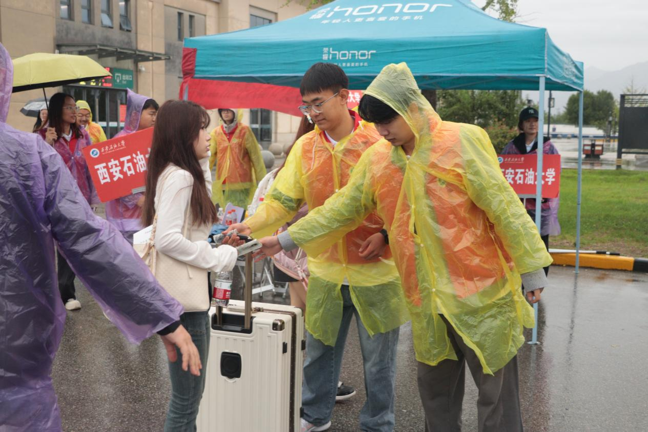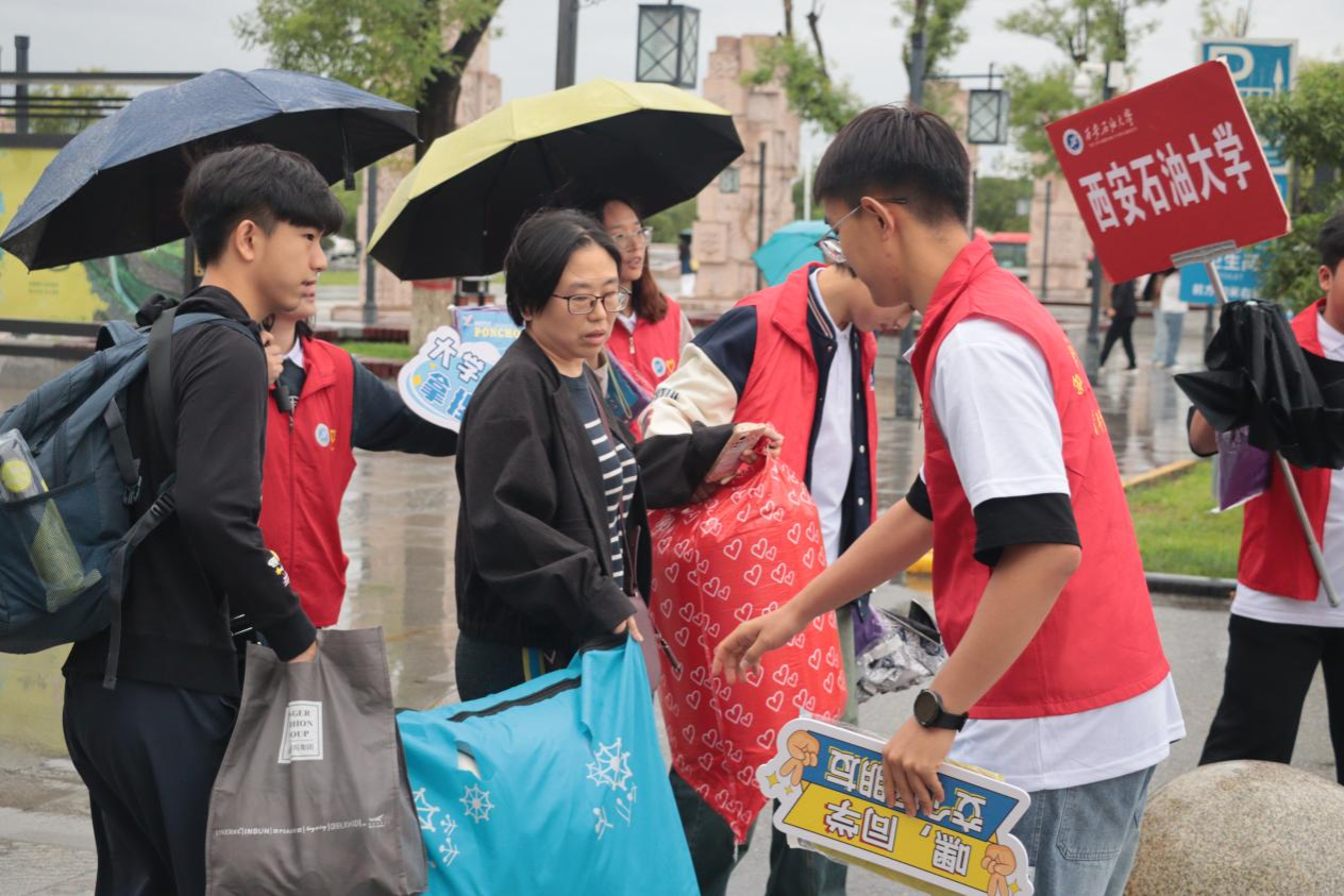鄠邑高鐵站作為新生抵達(dá)的重要點(diǎn)位,整體迎新志愿工作任務(wù)繁重、節(jié)奏緊張。志愿師生們穿梭在雨中,耐心引導(dǎo)、搬運(yùn)行李,全身濕透毫無(wú)怨言。種宇宏詳查看了迎新志愿服務(wù)的工作現(xiàn)場(chǎng),詳細(xì)了解了迎新工作情況,對(duì)大家有序的組織、飽滿的熱情和耐心的服務(wù)給予了高度肯定,同時(shí)也對(duì)大家不懼風(fēng)雨、堅(jiān)守崗位的奉獻(xiàn)精神給予了高度贊揚(yáng)。
