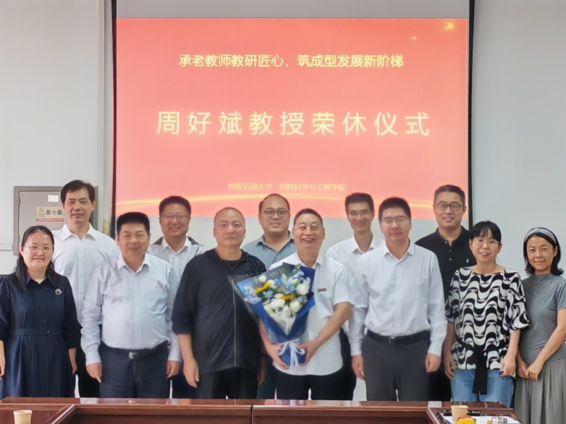 9月10日上午,在第41個教師節(jié)之際,材料科學(xué)與工程學(xué)院在鄠邑校區(qū)天工樓204會議室為2025年退休的周好斌教授舉行了隆重而溫馨的教職工榮休儀式。儀式由學(xué)院黨委書記耿嶺主持,副校長張驍勇教授、學(xué)院領(lǐng)導(dǎo)班子成員、各教研室主任和教師代表參加了儀式。