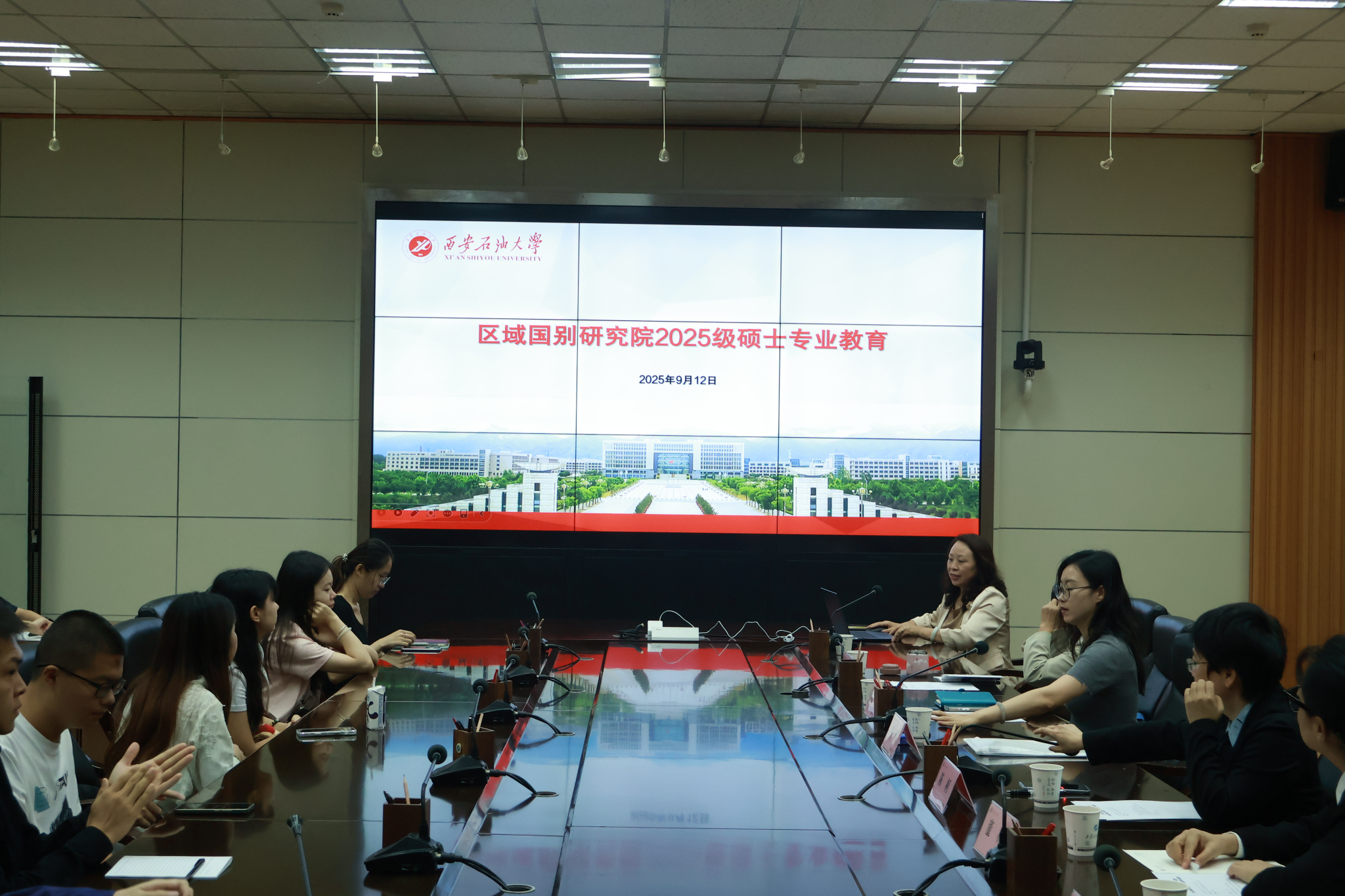 9月12日上午,區(qū)域國別研究院在雁塔校區(qū)會議中心第二會議室舉辦2025級區(qū)域國別學碩士研究生開學典禮暨入學專業(yè)教育。研究院執(zhí)行院長劉輝、區(qū)域國別學碩士研究生導師以及2025級研究生新生參加會議。會議由研究院陶李主持。