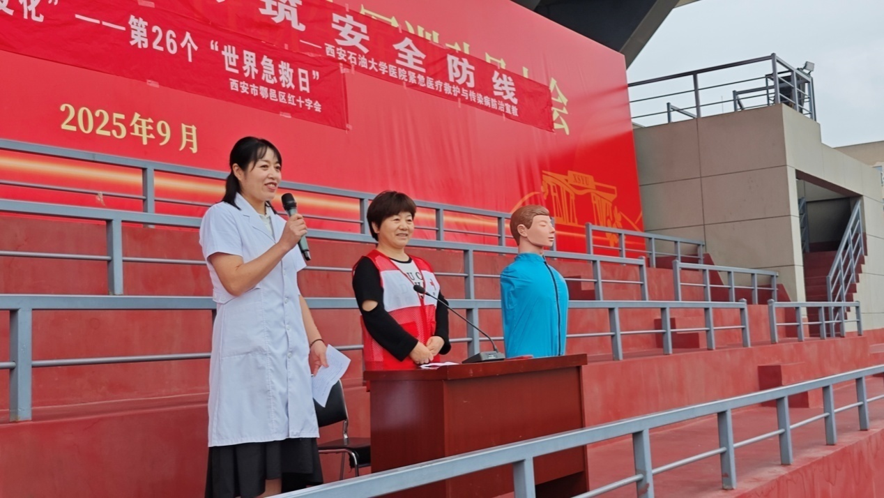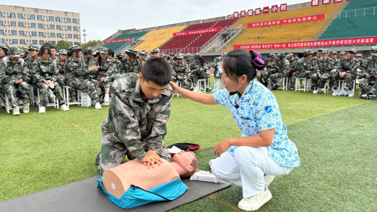 在9月13日第26個(gè)“世界急救日”(今年主題為“急救與氣候變化”)到來之際,為助力2025級新生平穩(wěn)適應(yīng)大學(xué)環(huán)境,系統(tǒng)提升其健康防護(hù)意識與突發(fā)事件應(yīng)對能力,9月12日,學(xué)校武裝部、校醫(yī)院攜手鄠邑區(qū)紅十字會、鄠邑區(qū)疾病預(yù)防控制中心,在鄠邑校區(qū)東操場聯(lián)合開展應(yīng)急救護(hù)培訓(xùn)、傳染病防治講座及醫(yī)保政策科普系列活動(dòng)。作為新生入學(xué)教育的“關(guān)鍵第一課”,活動(dòng)緊密對標(biāo)學(xué)?!叭珖谌本冉逃圏c(diǎn)學(xué)?!苯ㄔO(shè)目標(biāo),深度踐行“人人學(xué)急救,急救為人人”的理念,結(jié)合“急救與氣候變化”主題,著力構(gòu)建系統(tǒng)化、多維度的校園健康保障機(jī)制。