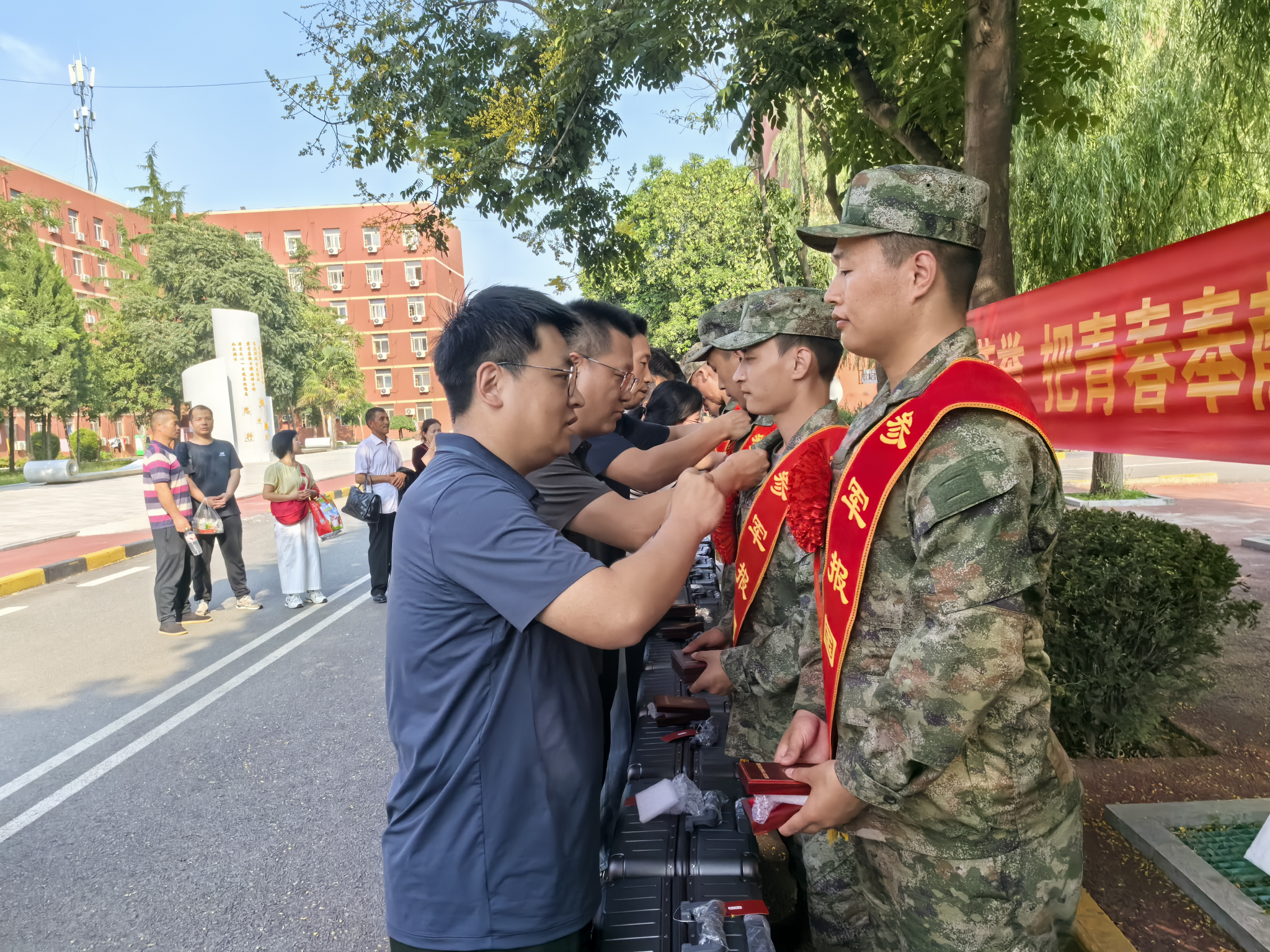 在溫馨的氛圍中,老師們?yōu)槿胛閷W(xué)生逐一佩戴西安石油大學(xué)參軍入伍紀(jì)念章,并送上精心準(zhǔn)備的行李箱。同學(xué)們紛紛表示,到了部隊后,一定不會辜負(fù)學(xué)校的培養(yǎng),會以最飽滿的熱情投入訓(xùn)練,以最堅定的信念保家衛(wèi)國,在軍營里刻苦磨礪、奮勇爭先,用實際行動為母校爭光,為國防事業(yè)貢獻(xiàn)自己的青春力量。