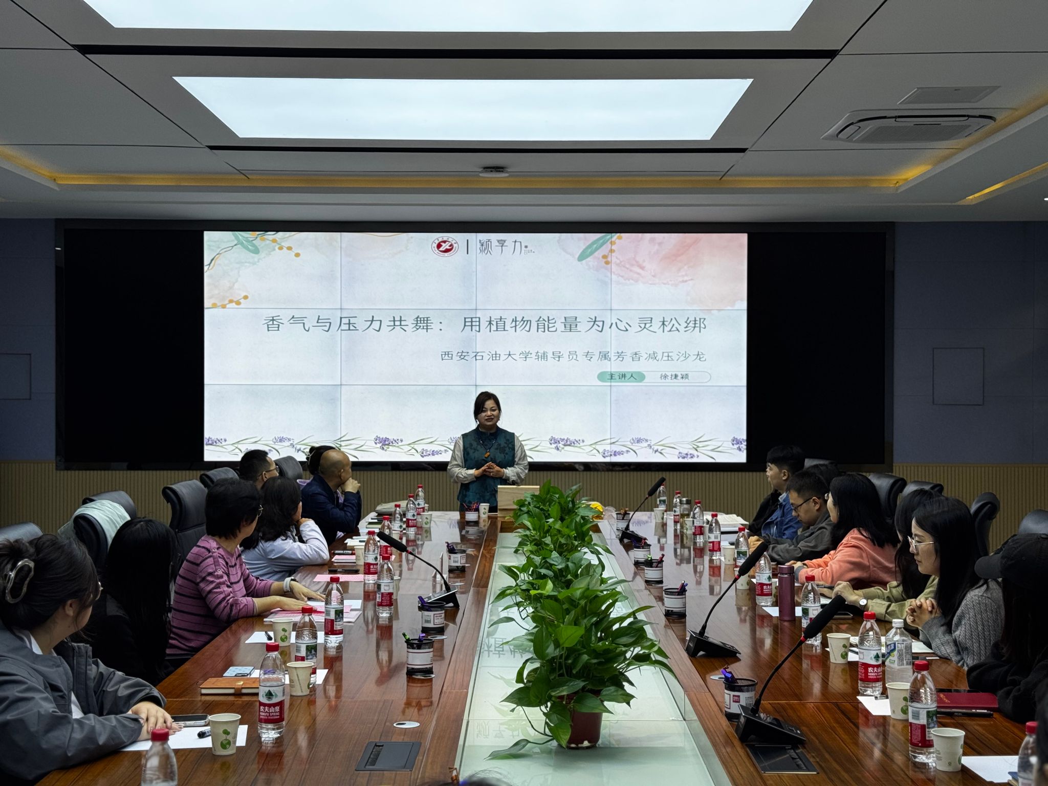 為進(jìn)一步關(guān)愛學(xué)工干部身心健康,提升職業(yè)幸福感,一場《香氣與壓力共舞:用植物能量為心靈松綁》的西安石油大學(xué)學(xué)工干部專屬芳香減壓沙龍,于10月11日上午在我校鄠邑校區(qū)博覽樓A116成功舉辦。本次活動特邀我校電子工程學(xué)院2001屆校友、國家衛(wèi)健委認(rèn)證健康管理師徐捷穎女士重返母校,以其深耕芳香療法領(lǐng)域22年的跨界經(jīng)驗(yàn),為學(xué)工干部們帶來了一場融科學(xué)、藝術(shù)與實(shí)踐于一體的身心療愈之旅。