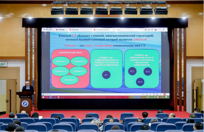 西安石油大學(xué)Dmitry I. Ivanov教授作題為《認(rèn)知人文符號學(xué)在區(qū)域國別研究中的應(yīng)用》的主旨報告,強(qiáng)調(diào)在認(rèn)知人文符號學(xué)理論框架下,區(qū)域被視為一個多層面的多義符號對象—由不同類型復(fù)合文本構(gòu)成的系統(tǒng)。區(qū)域是一個主體空間。