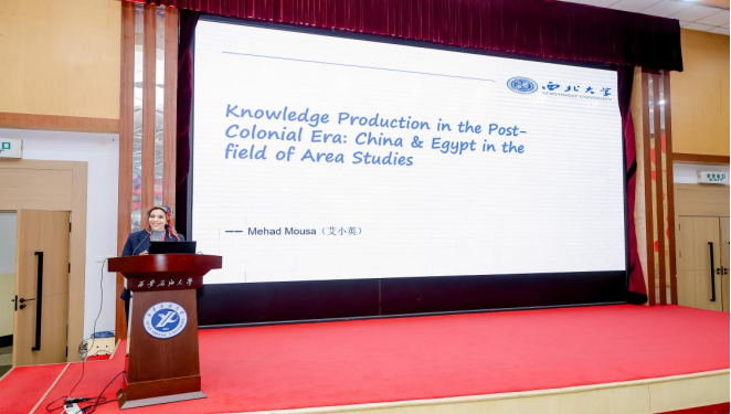 西北大學(xué)Mehad Mousa博士作題為《后殖民時代的知識生產(chǎn):中國與埃及高校區(qū)域國別研究的互鑒與競爭》的主旨報告,她指出在后殖民時代,區(qū)域國別研究長期受西方學(xué)術(shù)霸權(quán)影響,但近年來,中國與埃及作為非西方文明古國,正嘗試構(gòu)建本土化的知識生產(chǎn)體系。