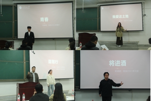 比賽在熱烈氛圍中拉開帷幕。圍繞“典耀中華,賡續(xù)文脈”主題,參賽選手依次登臺,以飽滿的熱情和多樣的形式演繹經(jīng)典作品。有的深情婉轉,如溪流潺潺;有的激昂澎湃,似烈火熾燃。《將進酒》的豪邁、《青春》的激揚、《琵琶行》的婉轉、《中國文脈》的厚重……選手們用聲音勾勒詩意畫卷,用情感傳遞文化力量,贏得了現(xiàn)場觀眾的陣陣掌聲。經(jīng)過激烈角逐,勘探2503鄧雯軒《青春》 與勘探2501李興喆《將進酒》 斬獲一等獎,并將代表學院參加校級“秋之韻”詩文配樂朗誦比賽。