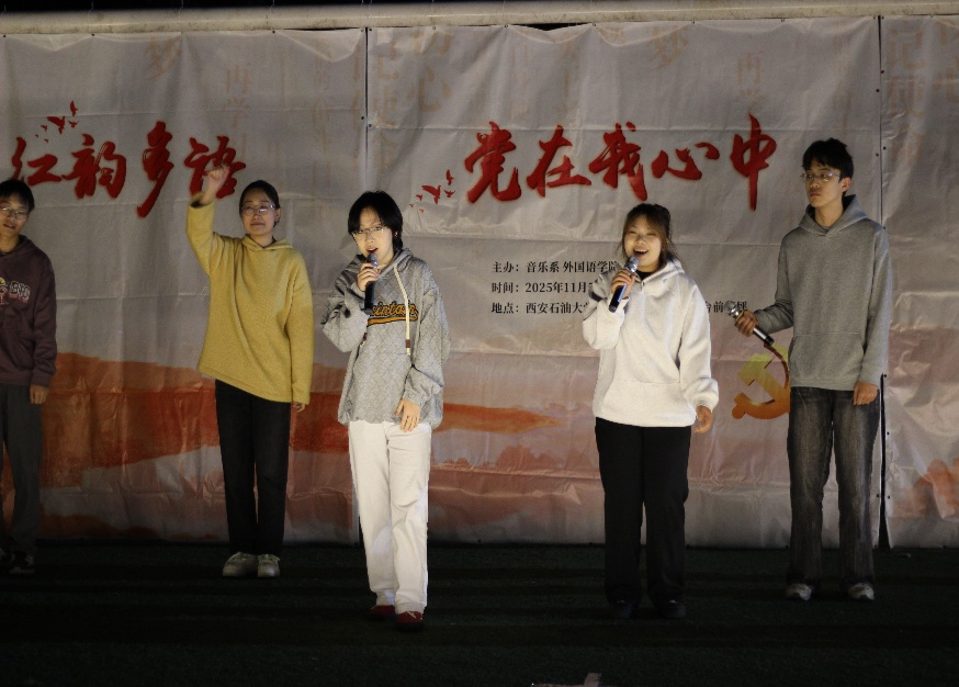 11月5日,鄠邑校區(qū)東田徑場(chǎng)草坪星光璀璨、樂聲飛揚(yáng),為期一晚的校園草地音樂節(jié)在師生們的熱烈歡呼聲中圓滿落幕。本次音樂節(jié)由音樂(系)主辦,外國(guó)語學(xué)院承辦,以“黨在我心中”為主題,以音樂為媒回望百年征程,豐富校園文化生活,為學(xué)子們提供展現(xiàn)自我的平臺(tái),吸引了數(shù)百名師生歡聚一堂,在旋律中感悟當(dāng)?shù)某跣暮褪姑?/p>