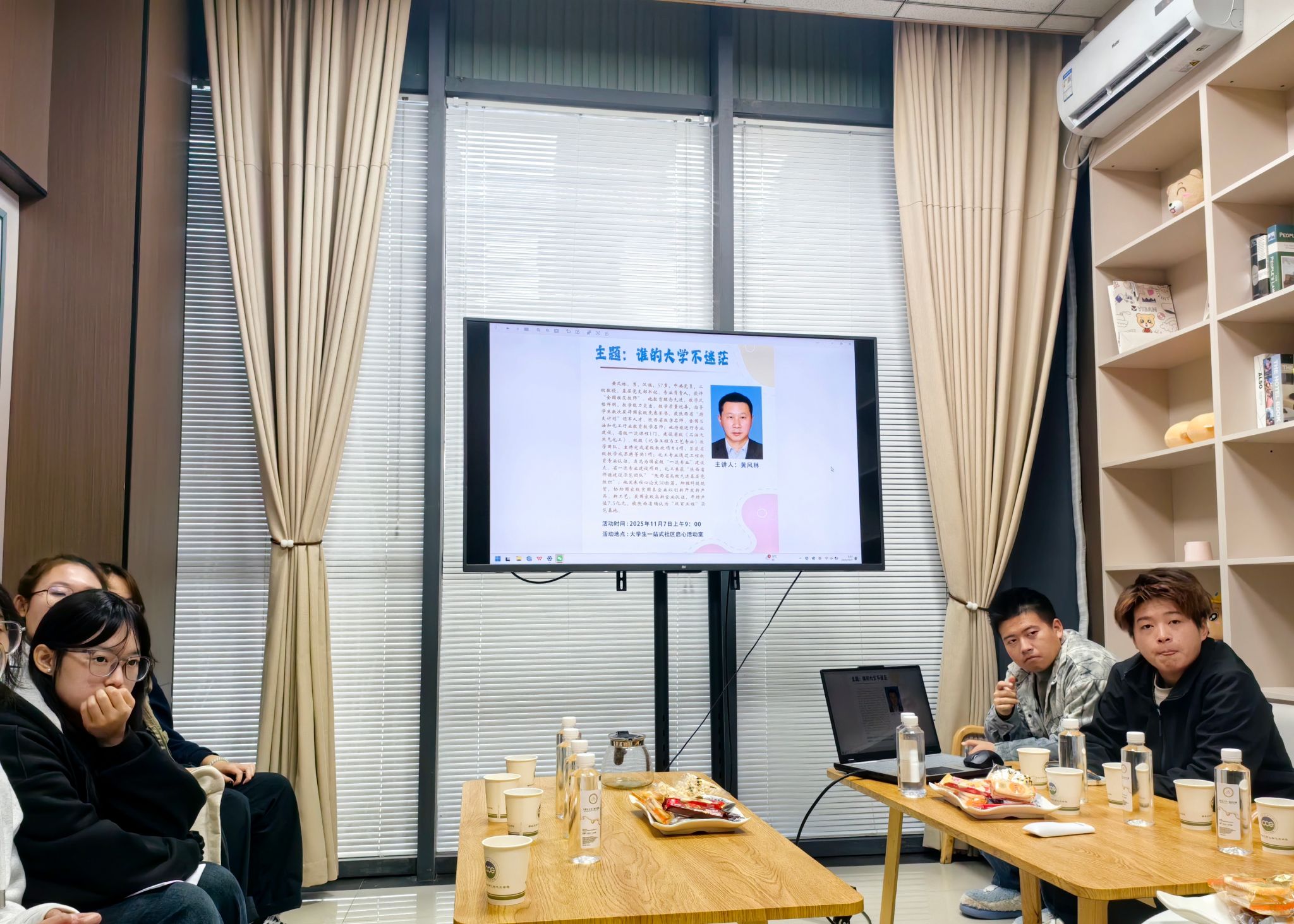 為持續(xù)搭建師生間常態(tài)化交流平臺(tái),幫助學(xué)生科學(xué)合理規(guī)劃大學(xué)生活,持續(xù)推進(jìn)學(xué)風(fēng)建設(shè)工作,11月7日上午,學(xué)院在“一站式”社區(qū)啟心活動(dòng)室舉行第十七期“師”“化”實(shí)說(shuō)活動(dòng)。本期邀請(qǐng)“全國(guó)模范教師”、二級(jí)教授黃風(fēng)林擔(dān)任主講,圍繞“誰(shuí)的大學(xué)不迷?!边@一主題,與同學(xué)們展開了一場(chǎng)心靈的對(duì)話?;顒?dòng)由學(xué)院黨委副書記喬曉主持,2025級(jí)應(yīng)用化學(xué)專業(yè)學(xué)生代表參加。