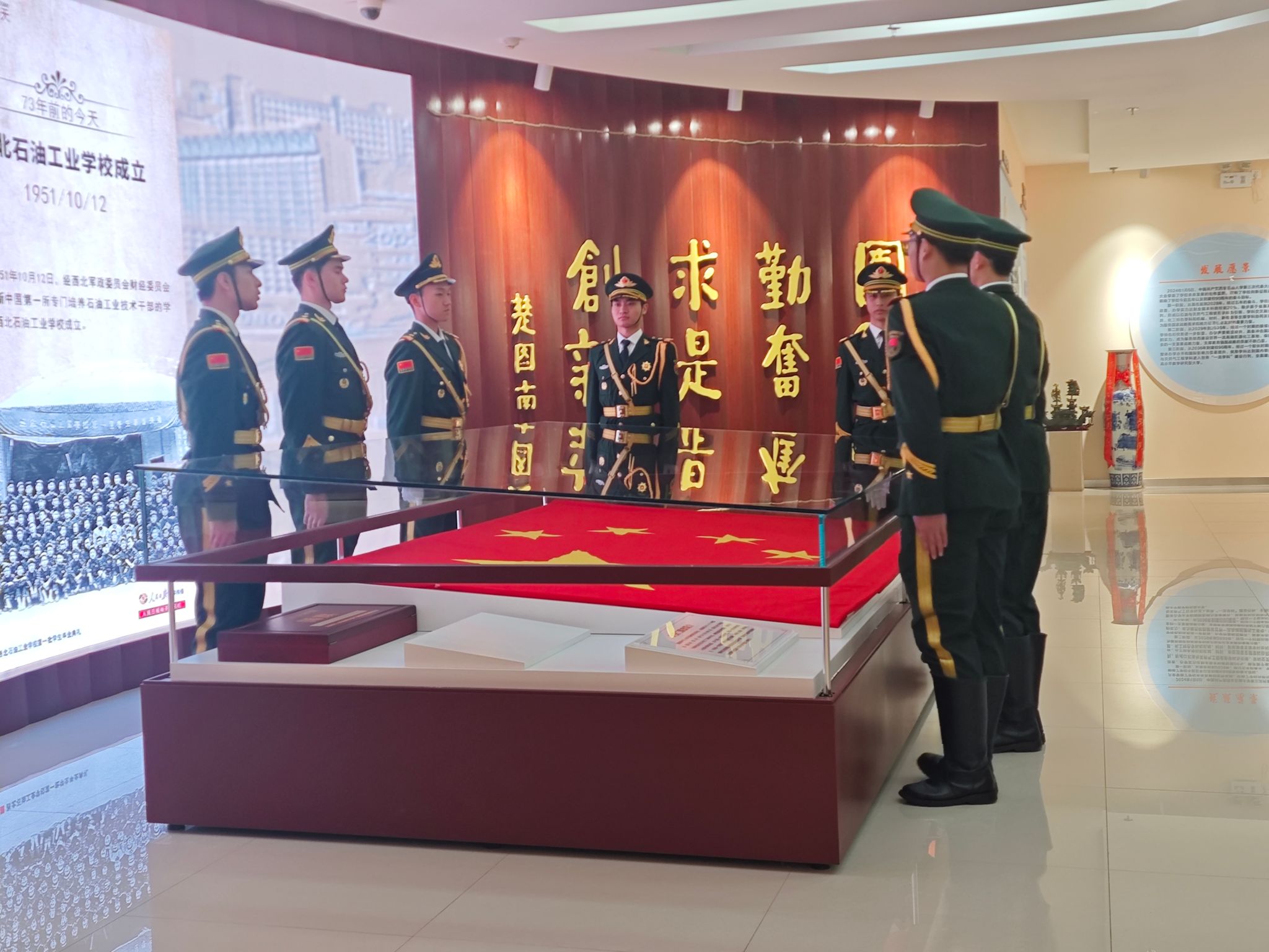 最后,檔案館館長(zhǎng)馬超在總結(jié)發(fā)言中表示,國(guó)旗入館,是榮譽(yù)更是責(zé)任。通過(guò)講述該面國(guó)旗與校慶日的特殊淵源,校史館將串聯(lián)起學(xué)校與祖國(guó)能源事業(yè)同頻共振的發(fā)展故事。我們將以國(guó)旗為指引,賡續(xù)紅色血脈,傳承石油精神,讓愛(ài)國(guó)情、強(qiáng)國(guó)志、報(bào)國(guó)行在西石大的校園里代代相傳,共同書(shū)寫(xiě)學(xué)校高質(zhì)量發(fā)展與祖國(guó)能源事業(yè)繁榮的嶄新篇章!