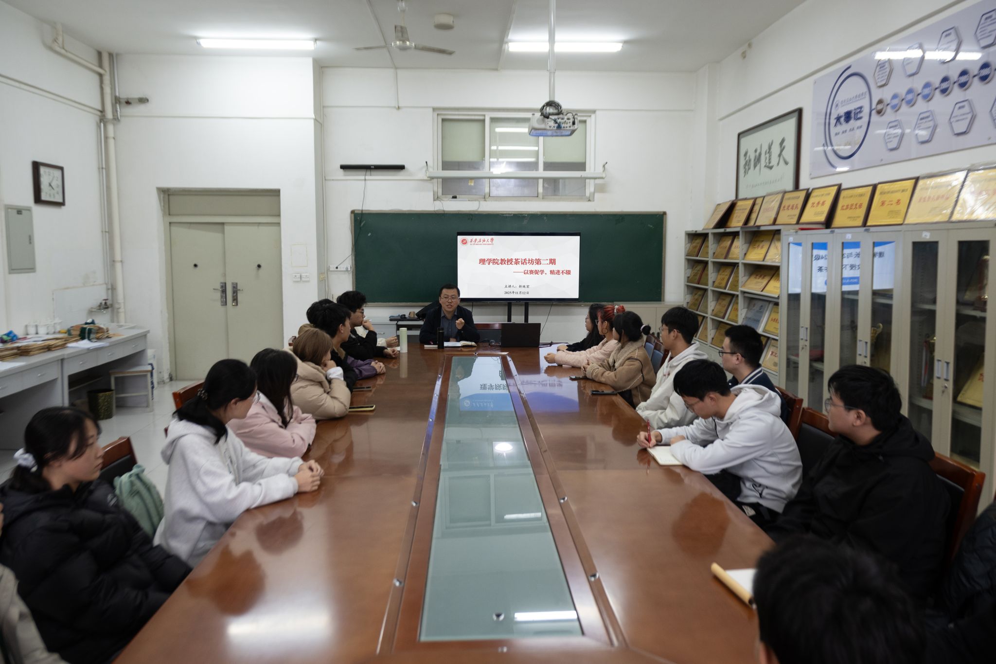 11月12日,理學(xué)院第二期“教授茶話坊”座談活動順利舉行。本次活動由院長折延宏教授主持,聚焦“大學(xué)階段如何高效參與學(xué)科競賽”,與大二、大三年級學(xué)生代表展開深入交流,分享競賽經(jīng)驗,解讀支持政策,助力學(xué)生明晰發(fā)展路徑。