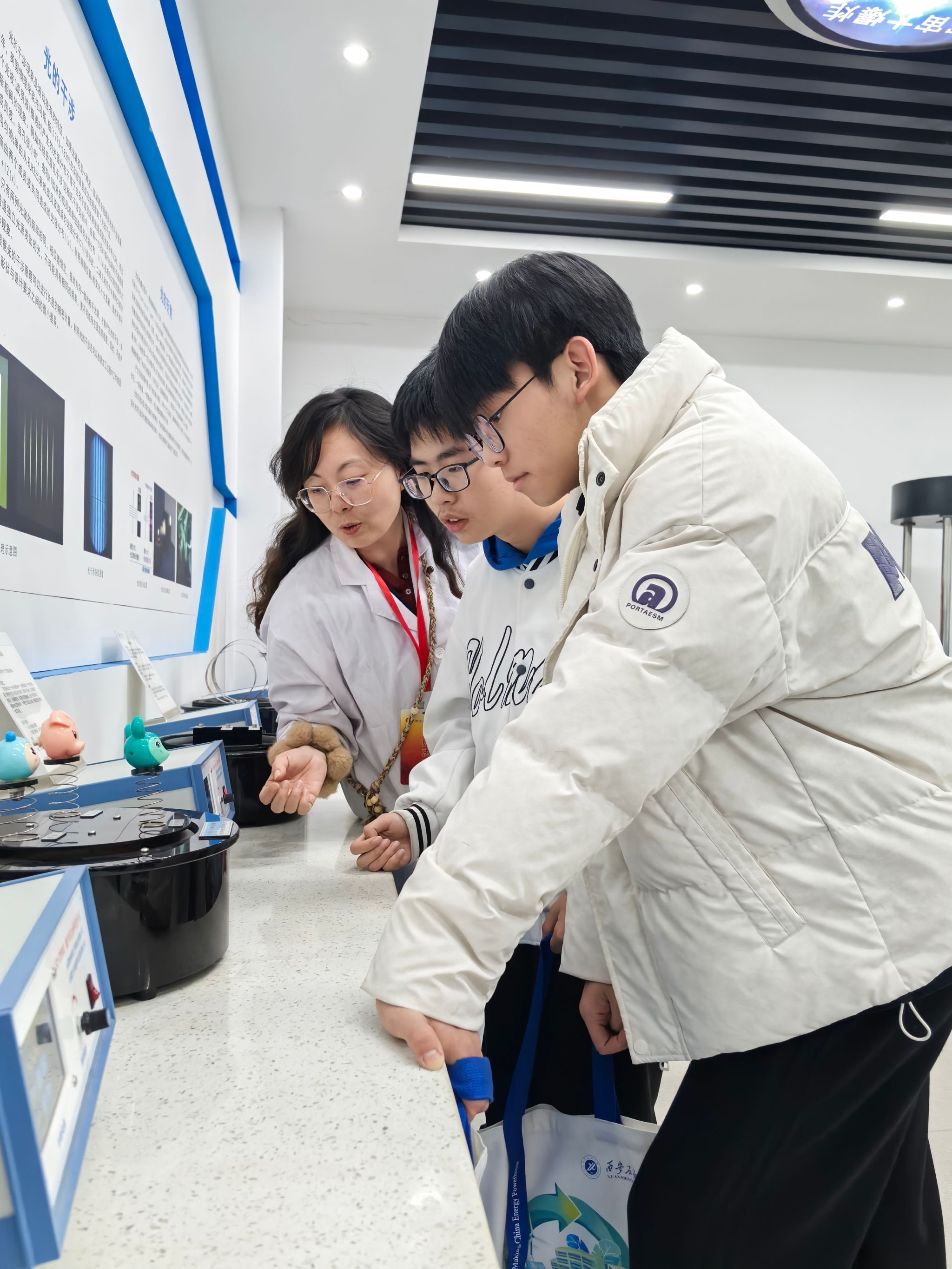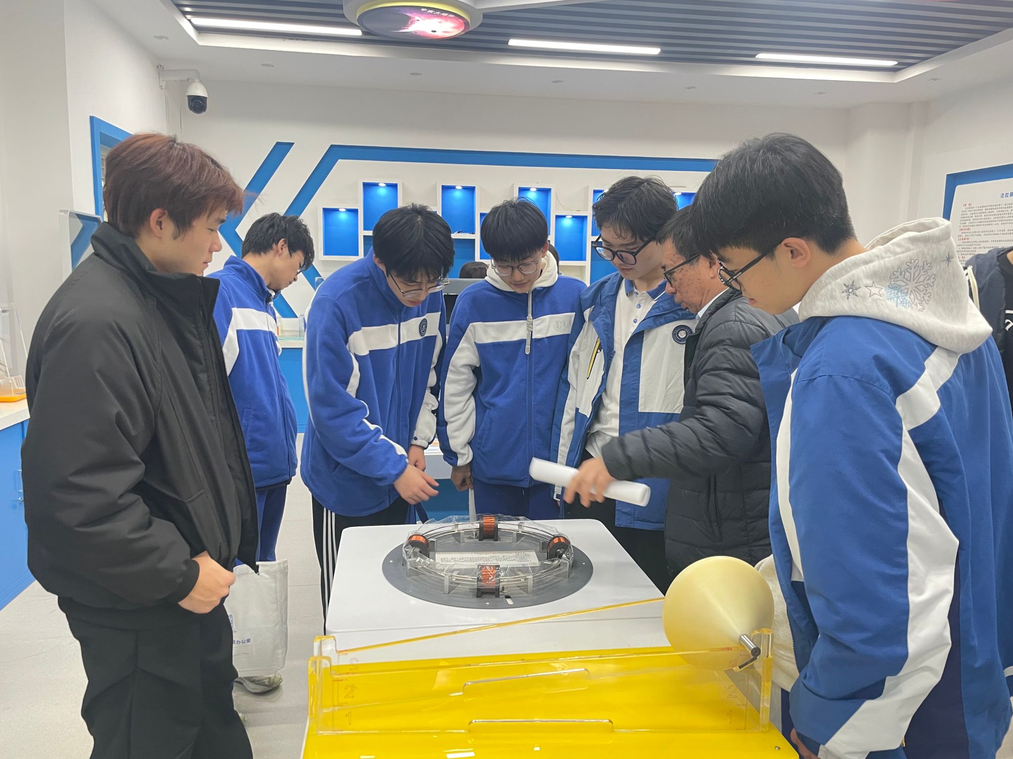 研學(xué)活動第二站來到理學(xué)院物理演示實(shí)驗(yàn)室。物理演示實(shí)驗(yàn)室是陜西省科普教育基地,是集圖像演示、實(shí)物操作等功能為一體的開放性實(shí)驗(yàn)室,涵蓋了力學(xué)、電磁學(xué)、光學(xué)、熱學(xué)等方面知識。在理學(xué)院師生講解員的耐心講解和示范下,同學(xué)們依次參觀并親身體驗(yàn)了一系列精彩的物理實(shí)驗(yàn)。從靈巧的機(jī)械裝置,到神奇的電磁感應(yīng);從熱現(xiàn)象的微觀奧秘,到光和影的奇幻世界,每一個實(shí)驗(yàn)都讓同學(xué)們驚嘆不已,深深感受到了物理世界的無窮魅力。這些精心設(shè)計(jì)的演示實(shí)驗(yàn),不僅激發(fā)了學(xué)生對物理學(xué)奧秘的好奇心與探索欲,更為大家搭建起了一座通往科學(xué)殿堂的橋梁,讓物理之美躍然眼前,深入人心。