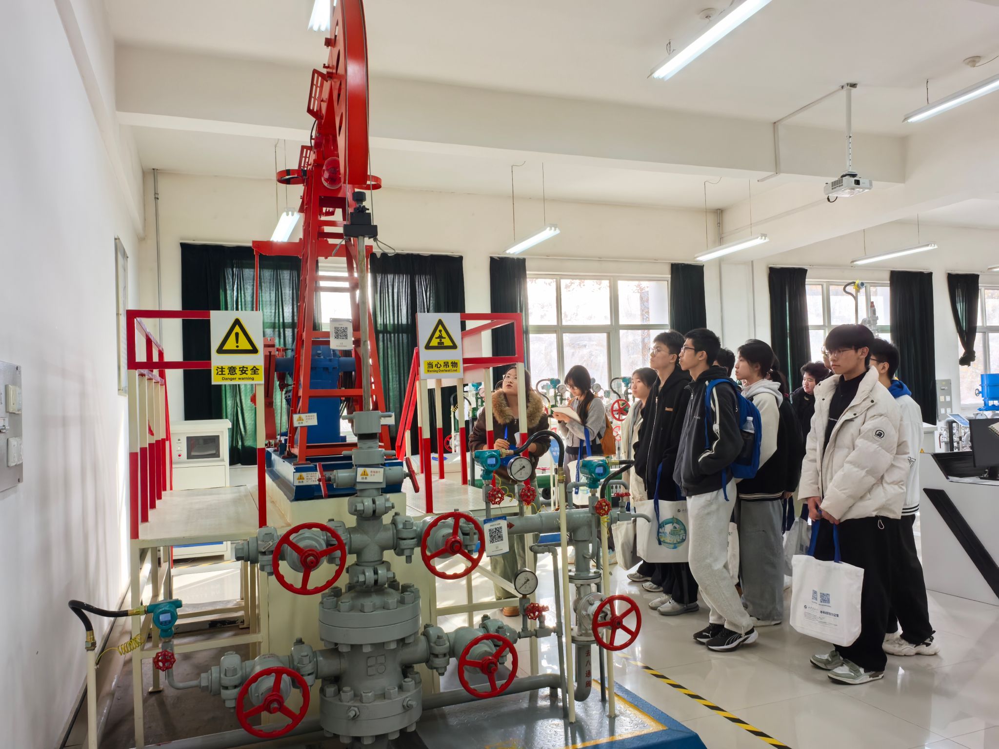 研學(xué)活動最后一站參觀了我校陜西省石油石化虛擬仿真實(shí)驗(yàn)教學(xué)中心。在大學(xué)生講解員的帶領(lǐng)下,五高師生參觀了鉆井實(shí)訓(xùn)室、地質(zhì)標(biāo)本實(shí)訓(xùn)室、采油實(shí)訓(xùn)室、油氣分布沙盤、集輸、煉化實(shí)訓(xùn)室、采油實(shí)訓(xùn)室。通過參觀學(xué)習(xí),學(xué)生初步了解了石油勘探、開采、煉化和運(yùn)輸?shù)娜^程,近距離感受到了石油石化及地質(zhì)行業(yè)的魅力與挑戰(zhàn)。