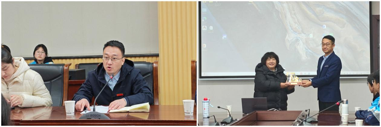 上午10時(shí),活動(dòng)在圖書館東門階梯合影中拉開序幕。圖書館第二會(huì)議室,大家共同觀看西安石油大學(xué)宣傳片,全面了解學(xué)校的發(fā)展歷程、學(xué)科特色與育人成果。在歡迎儀式上,電子工程學(xué)院教學(xué)副院長任志平致歡迎辭,對(duì)岳廟高級(jí)中學(xué)師生的到來表示熱烈歡迎,并簡要介紹了學(xué)院的基本情況與辦學(xué)優(yōu)勢(shì)。隨后,電子工程學(xué)院黨委副書記芮執(zhí)根代表學(xué)院向中學(xué)師生贈(zèng)送抽油機(jī)模型,象征著石油工業(yè)精神的傳承與兩校友誼的延續(xù)。