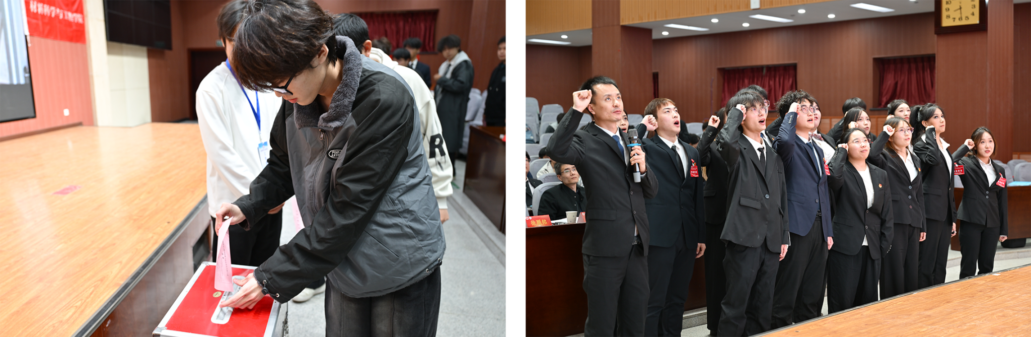 按照大會(huì)議程和選舉辦法,經(jīng)民主投票選舉,產(chǎn)生了材料科學(xué)與工程學(xué)院新一屆學(xué)生會(huì)委員會(huì)委員。新任團(tuán)委委員和新當(dāng)選的學(xué)生會(huì)委員會(huì)委員面向團(tuán)旗進(jìn)行了莊嚴(yán)宣誓。