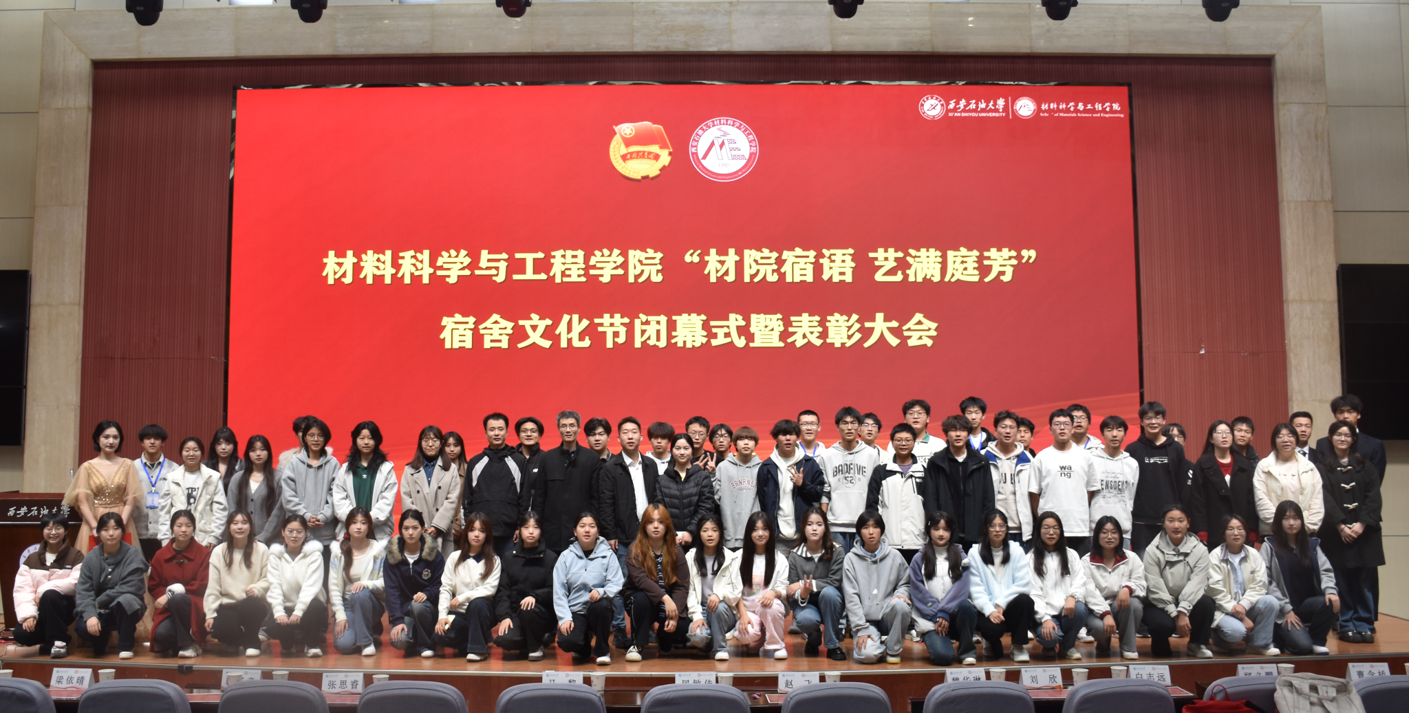 11月28日晚,材料科學與工程學院2025年“材院宿語·藝滿庭芳 ”宿舍文化節(jié)閉幕式暨表彰大會在鄠邑校區(qū)弘石學術(shù)報告廳隆重舉行。學院黨委副書記屈敏佳、學生工作辦公室副主任趙飛、各年級輔導(dǎo)員、團委和學生會主要負責人及四百余名學生代表參加。