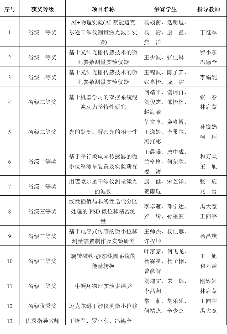 附2:2025年第十一屆全國大學(xué)生物理實(shí)驗(yàn)競(jìng)賽(創(chuàng)新)獲獎(jiǎng)名單