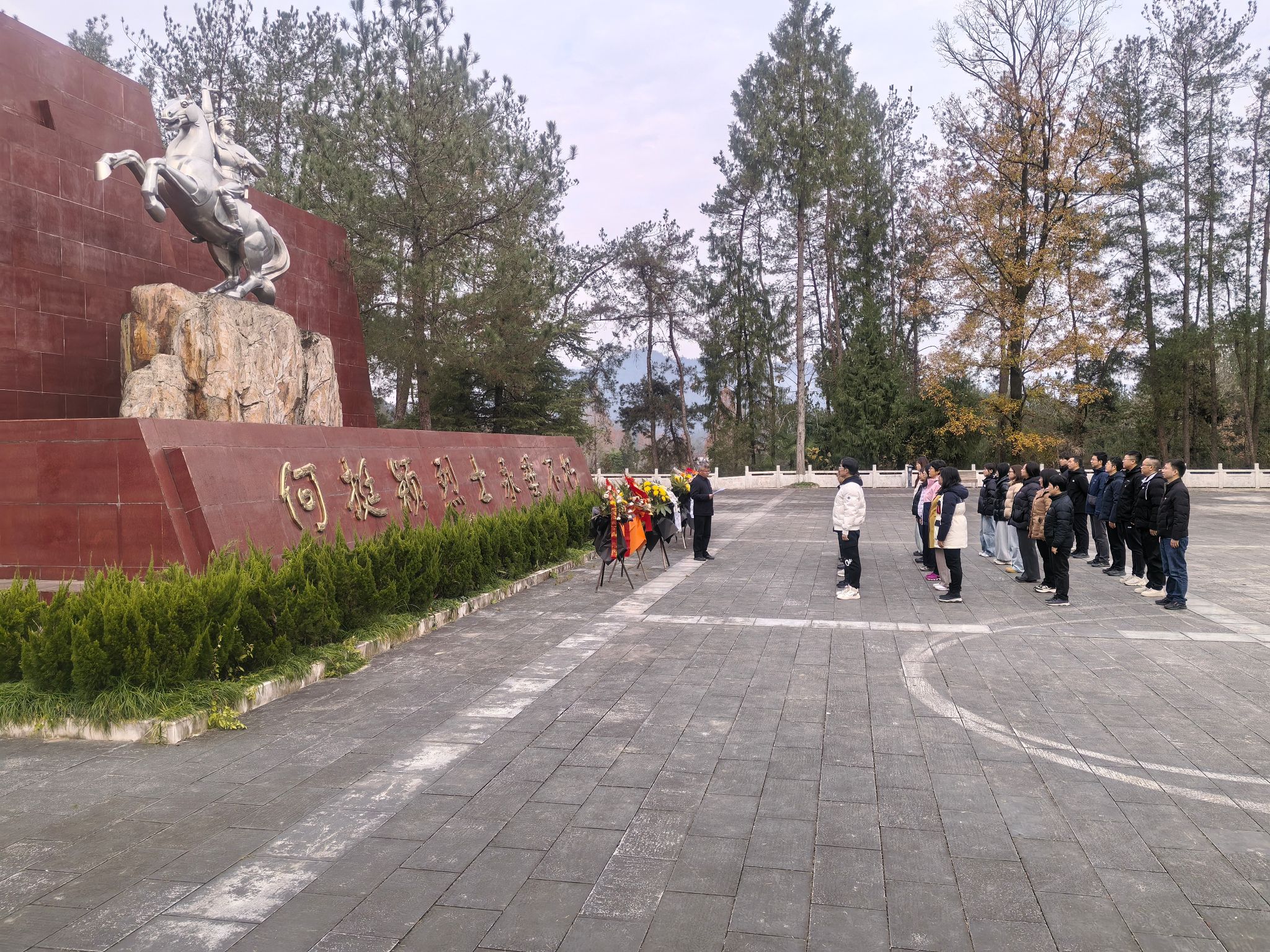 參觀結(jié)束后,張驍勇在何挺穎烈士雕塑前為師生們講授了一堂題為《學(xué)黨章鑄忠誠(chéng),悟思想強(qiáng)使命-何挺穎烈士事跡介紹》微黨課。他詳細(xì)講述了何挺穎烈士的生平事跡,從何挺穎早年投身革命,到在井岡山革命根據(jù)地的英勇斗爭(zhēng),再到他為革命事業(yè)壯烈犧牲的感人事跡,生動(dòng)地展現(xiàn)了何挺穎烈士對(duì)黨忠誠(chéng)、勇于擔(dān)當(dāng)、不怕?tīng)奚某绺呔衿焚|(zhì)。張驍勇通過(guò)何挺穎烈士的事跡,深入闡述了黨章中關(guān)于黨員義務(wù)和責(zé)任的相關(guān)內(nèi)容,引導(dǎo)師生們深刻領(lǐng)會(huì)黨的初心和使命。他指出,管道工程學(xué)院黨委本次組織的“學(xué)黨章鑄忠誠(chéng),悟思想強(qiáng)使命”的專題學(xué)習(xí)班,就是要學(xué)習(xí)共產(chǎn)黨員所蘊(yùn)含的忠誠(chéng)和擔(dān)當(dāng)精神,他用自己的一生,樹(shù)立了忠誠(chéng)于黨、忠誠(chéng)于人民、忠誠(chéng)于革命事業(yè)的光輝榜樣,要從何挺穎烈士的事跡中汲取力量,不斷強(qiáng)化自己的使命意識(shí),以更加堅(jiān)定的信念、更加飽滿的熱情、更加扎實(shí)的工作,始終保持對(duì)革命事業(yè)的熱愛(ài)和執(zhí)著,勇于擔(dān)當(dāng),敢于奉獻(xiàn),以實(shí)際行動(dòng)詮釋共產(chǎn)黨員的使命和擔(dān)當(dāng)。