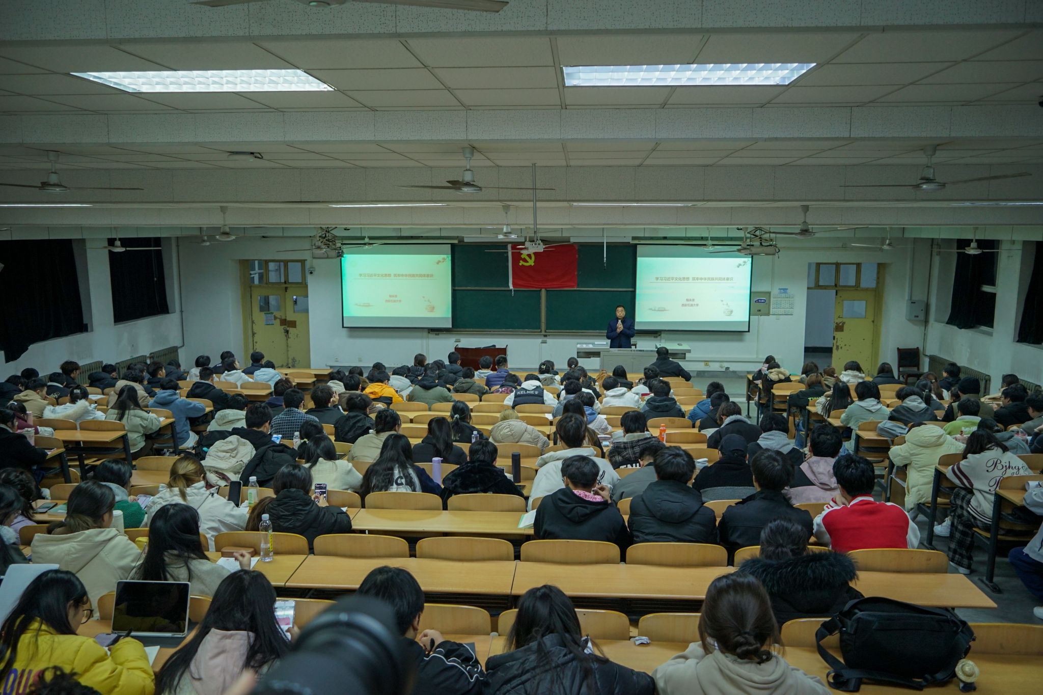 為深入貫徹落實(shí)黨的二十屆四中全會(huì)精神,堅(jiān)持以習(xí)近平文化思想鑄魂育人,12月8日晚,理學(xué)院、體育學(xué)院、音樂系、區(qū)域國別研究院在鄠邑校區(qū)博覽樓134教室聯(lián)合舉辦第二十期入黨積極分子培訓(xùn)班第四講。校黨委副書記程永清應(yīng)邀講授了題為《學(xué)習(xí)習(xí)近平文化思想 鑄牢中華民族共同體意識(shí)》的專題黨課,280余名入黨積極分子參加。