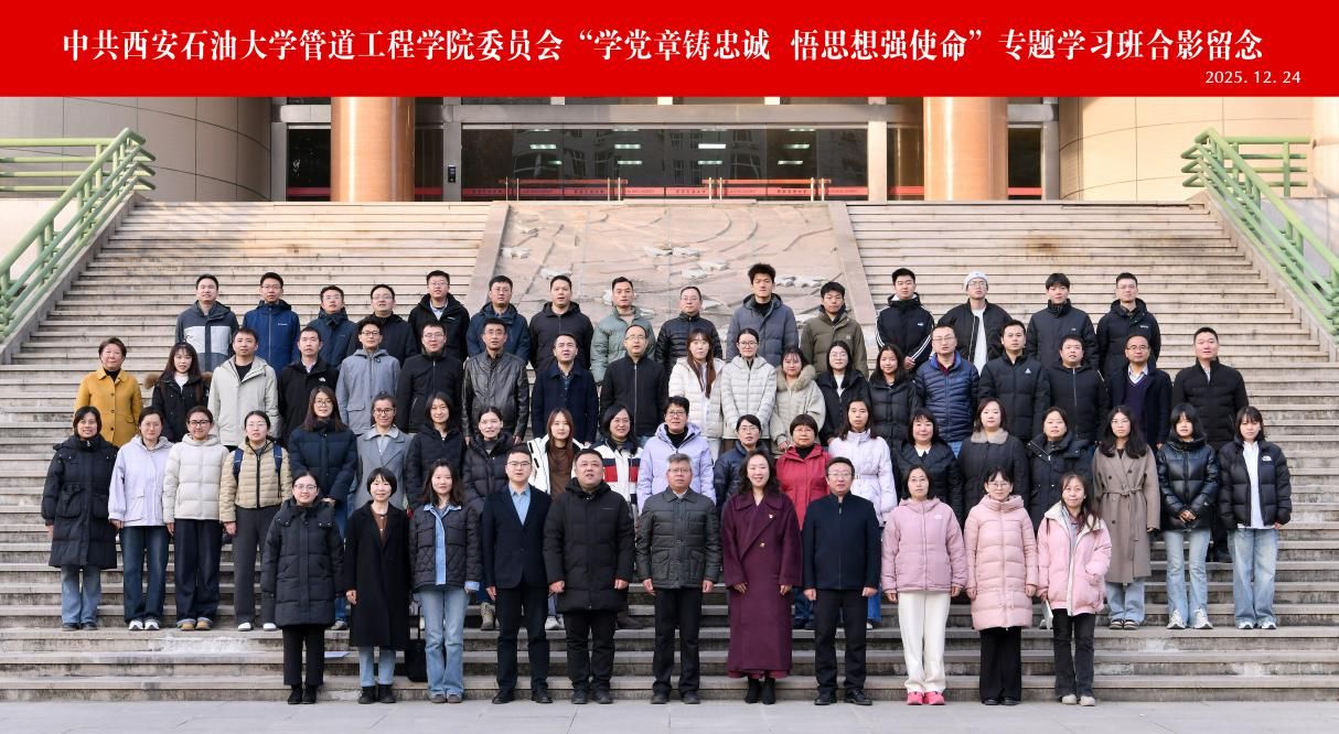 2025年12月24日下午,管道工程學(xué)院黨委在雁塔校區(qū)西階第三會(huì)議室開(kāi)展“學(xué)黨章鑄忠誠(chéng),悟思想強(qiáng)使命”專題學(xué)習(xí)班第四講暨結(jié)業(yè)儀式。校黨委委員、副校長(zhǎng)張驍勇出席并作第四講專題報(bào)告,學(xué)院班子全體成員、全體教工黨員、研究生黨員代表70人參加儀式。儀式由學(xué)院黨委副書記高亮主持。