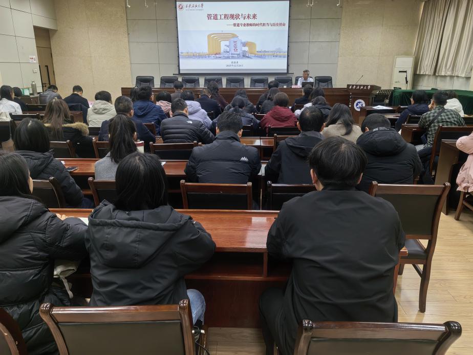 張驍勇以《管道工程現(xiàn)狀與未來(lái)——管道專業(yè)教師的時(shí)代擔(dān)當(dāng)與歷史使命》為題,從全球能源格局、管道工程發(fā)展歷程、國(guó)內(nèi)外管網(wǎng)建設(shè)現(xiàn)狀、未來(lái)發(fā)展趨勢(shì)等方面,系統(tǒng)闡述了管道工程在國(guó)家能源安全中的戰(zhàn)略地位。他指出,習(xí)近平總書記多次強(qiáng)調(diào)“石油能源建設(shè)對(duì)我們國(guó)家意義重大,中國(guó)作為制造業(yè)大國(guó),要發(fā)展實(shí)體經(jīng)濟(jì),能源的飯碗必須端在自己手里”,而管道就是能源輸送的“生命線”,是支撐國(guó)家綠色低碳轉(zhuǎn)型、實(shí)現(xiàn)“雙碳”目標(biāo)的關(guān)鍵基礎(chǔ)設(shè)施。他強(qiáng)調(diào),作為管道專業(yè)的教師,要了解全球能源發(fā)展現(xiàn)狀、掌握國(guó)內(nèi)外管道工程領(lǐng)域現(xiàn)狀、把握管道工程領(lǐng)域未來(lái)發(fā)展趨勢(shì),要以老一輩石油管道人在繼承大慶精神、鐵人精神的基礎(chǔ)上,在“八三”工程會(huì)戰(zhàn)中形成的“艱苦創(chuàng)業(yè)、勇于實(shí)踐、團(tuán)結(jié)協(xié)作、無(wú)私奉獻(xiàn)” “八三”精神為指引,以“管道為業(yè)、四海為家、艱苦為榮、野戰(zhàn)為樂(lè)”的管道優(yōu)良傳統(tǒng)為路徑,主動(dòng)將個(gè)人發(fā)展與國(guó)家戰(zhàn)略需求緊密結(jié)合,把課程思政融入專業(yè)教學(xué),把科研方向聚焦國(guó)家“卡脖子”難題,努力成為新時(shí)代能源事業(yè)的“守脈人”和“筑夢(mèng)者”。