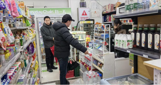 上午10時(shí),由副校長蘇文甫帶隊(duì),檢查組一行從鄠邑校區(qū)東體育場出發(fā),按照既定路線依次對(duì)松林超市、東區(qū)學(xué)生食堂區(qū)域商戶、綜合服務(wù)一條街商戶、源動(dòng)力街區(qū)商戶、菜鳥驛站、西區(qū)綜合樓區(qū)域商戶、大學(xué)生超市、圖書館閱悅咖啡等場所進(jìn)行全面檢查。檢查組重點(diǎn)圍繞消防安全、用電用氣安全、食品安全、環(huán)境衛(wèi)生及環(huán)保等關(guān)鍵領(lǐng)域展開,細(xì)致核查消防設(shè)施配置與有效性、消防通道暢通情況,重點(diǎn)排查私拉亂接、超負(fù)荷用電、飛線充電等違規(guī)用電行為,嚴(yán)格檢驗(yàn)燃?xì)夤艿篱y門完好性及泄漏報(bào)警裝置安裝情況;同時(shí)對(duì)餐飲商戶的《食品經(jīng)營許可證》、從業(yè)人員健康證明、食品采購貯存加工流程、餐具清洗消毒及防蠅防鼠防塵設(shè)施進(jìn)行逐一核驗(yàn),同步檢查物品堆放、油煙凈化、排污降噪及垃圾清理等環(huán)保相關(guān)工作,特別關(guān)注新商戶裝修改造中出現(xiàn)的安全隱患。此外,檢查組還查看了菜鳥驛站的運(yùn)行情況,確保假期物流服務(wù)安全有序。