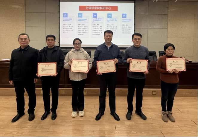動員會后,學(xué)院隆重舉行了五個特色研究中心的成立儀式。為精準(zhǔn)對接國家戰(zhàn)略與行業(yè)需求,系統(tǒng)構(gòu)建“外語+能源”跨學(xué)科研究體系,學(xué)院正式成立能源翻譯與語言服務(wù)研究中心、能源話語與國際傳播研究中心、石油行業(yè)專門用途外語研究中心、“一帶一路”能源區(qū)域國別研究中心及文學(xué)翻譯與跨文化傳播研究中心五個院設(shè)研究機(jī)構(gòu)。會上,學(xué)院領(lǐng)導(dǎo)向五位研究中心主任現(xiàn)場頒發(fā)了聘書,標(biāo)志著學(xué)院科研組織化、體系化建設(shè)邁入新階段,為核心研究方向提供了實體平臺支撐。
