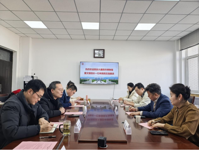 1月6日下午,西安大唐西市博物館館長董文強一行5人蒞臨我院,開展座談交流。交流會在鄠邑校區(qū)崇文樓314會議室舉行,外國語學院黨政領導及師生代表參會。