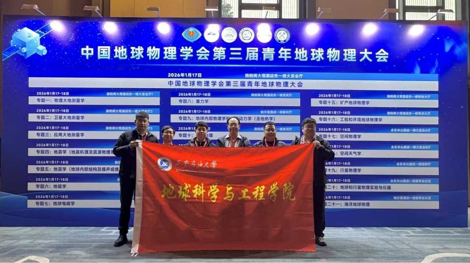 2026年1月16日至19日,第三屆青年地球物理大會在安徽合肥隆重舉行,本屆大會吸引了來自全球60多家單位的800多名頂尖專家和青年學(xué)者參加。我校地球科學(xué)與工程學(xué)副院長院曹靜杰教授帶領(lǐng)7位青年教師集體參加了本次大會。曹靜杰教授作為專題召集人組織了第十六專題,應(yīng)用地球物理系青年教師馮旭亮、李萌、楊飛龍、李欣欣、魯愷、楊文強,分別在地球電磁學(xué)、重力學(xué)、地磁學(xué)、工程和環(huán)境地球物理學(xué)、油氣測井與儲層評價、地震波場成像方法及技術(shù)、儲層識別與參數(shù)反演等專題作學(xué)術(shù)報告7場,展現(xiàn)了我校地球物理領(lǐng)域青年教師在相關(guān)領(lǐng)域的科研進展與風(fēng)采。