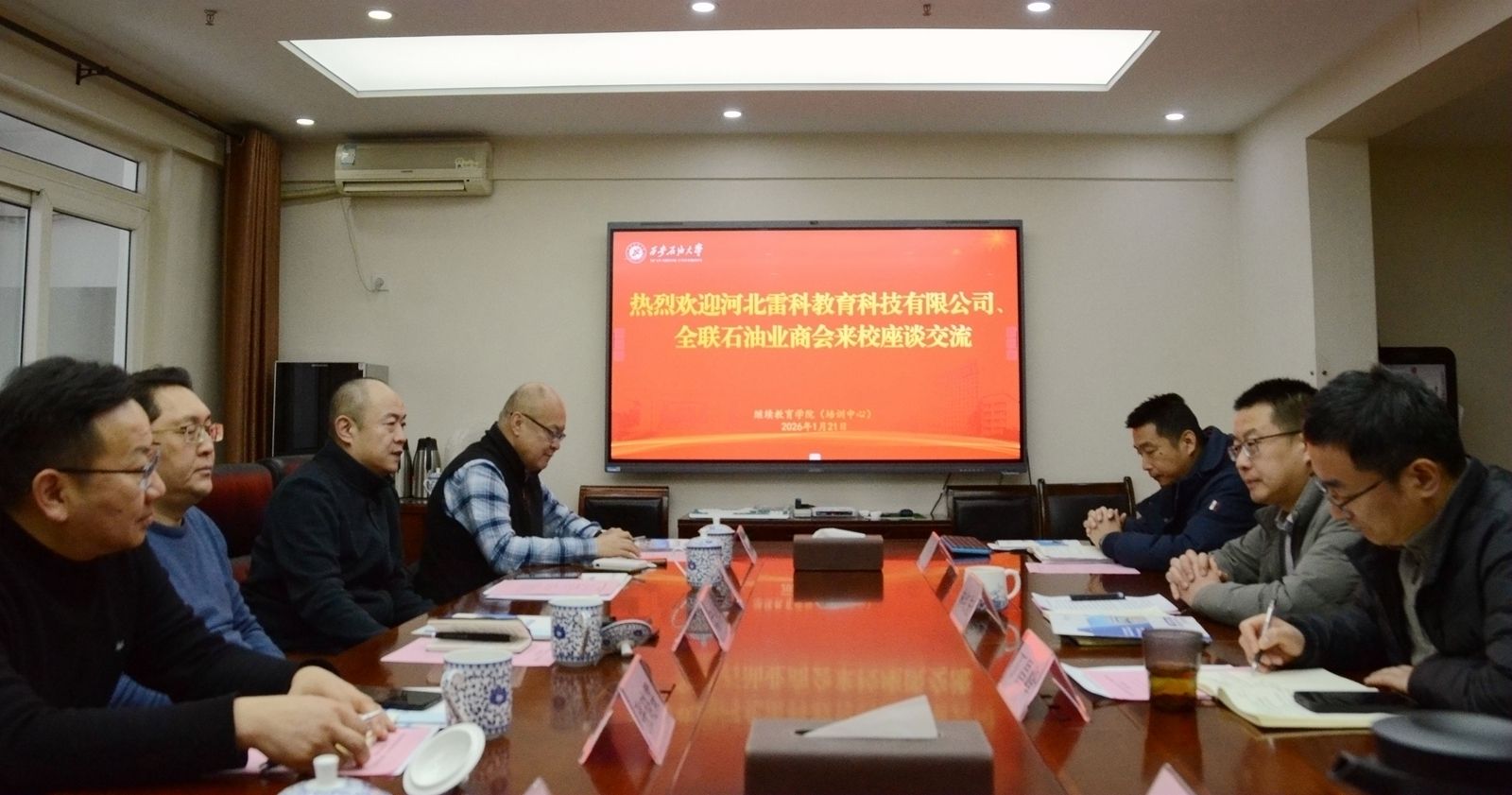 1月21日上午,河北雷科教育科技有限公司(以下簡稱“雷科教育”)總經(jīng)理溫海斌,全聯(lián)石油業(yè)商會常務(wù)理事兼天然氣分會秘書長孟慶巖、天然氣分會副秘書長張曉霖等一行5人蒞臨我校走訪交流,座談會在明德校區(qū)培訓(xùn)中心北樓召開。我校繼續(xù)教育學院(培訓(xùn)中心)院長(主任)林紅先、副院長丁昌峰,以及雙方相關(guān)部門負責人出席會議,會議由林紅先主持。