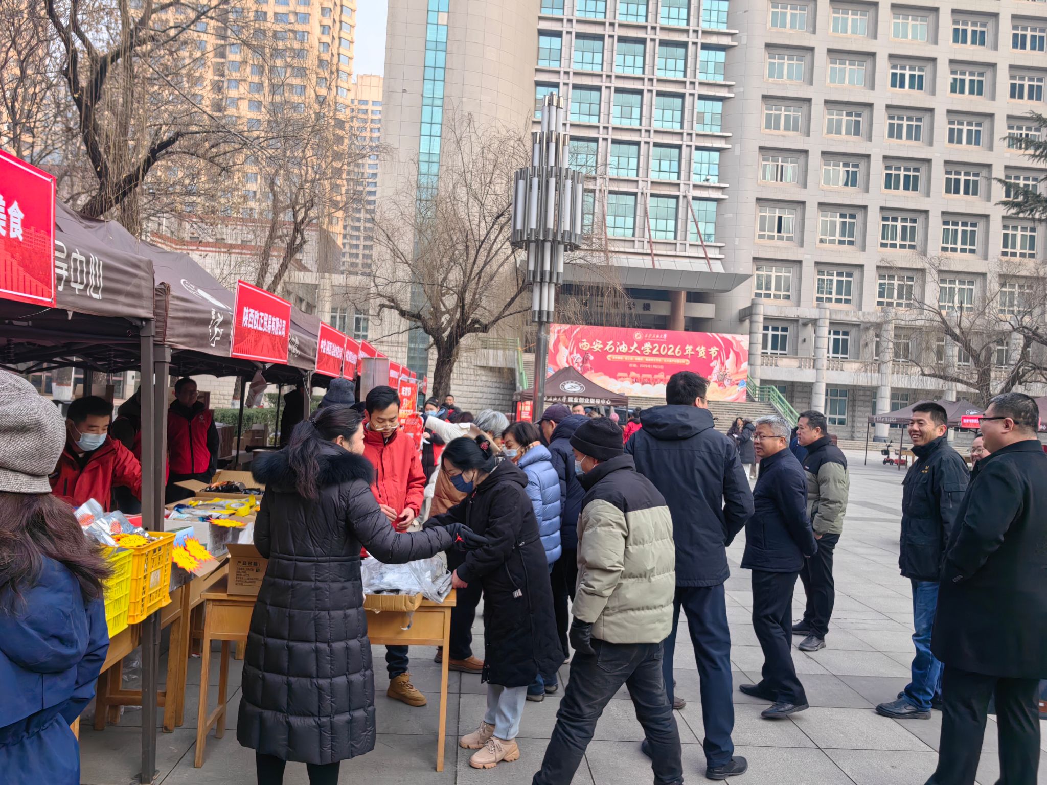 歲末寒意濃,校情暖人心。為深入落實(shí)校黨委“以教職工為中心” 的發(fā)展理念,將 “幸福西石大” 建設(shè)要求轉(zhuǎn)化為看得見、摸得著的民生福祉,1 月23日,由校工會(huì)、后勤處、離退休工作處、石大資產(chǎn)經(jīng)營公司聯(lián)合承辦的2026 年春節(jié)教職工專屬年貨節(jié)在我校雁塔校區(qū)圓滿舉辦。校黨委副書記程永清,副校長張驍勇、趙健等校領(lǐng)導(dǎo)親臨現(xiàn)場巡展,與教職工親切互動(dòng),共品年味、共話發(fā)展。本次活動(dòng)以“品質(zhì)優(yōu)、價(jià)格惠、服務(wù)暖、文化濃” 的鮮明特色,成為校黨委心系教職工、服務(wù)教職工的生動(dòng)實(shí)踐。