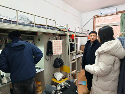 走訪前,董丙劍一行還深入實(shí)驗(yàn)室,與研究生導(dǎo)師交流留校學(xué)生情況。此次走訪檢查與慰問交流,既全面排查了宿舍安全隱患、強(qiáng)化了學(xué)生安全防范意識(shí),也拉近了學(xué)院與學(xué)生的距離,精準(zhǔn)掌握了留校生活與就業(yè)求職的真實(shí)情況。下一步,學(xué)院將持續(xù)做好假期留校學(xué)生動(dòng)態(tài)管理與日常關(guān)懷,常態(tài)化開展宿舍安全巡查,建立問題整改閉環(huán)機(jī)制,同時(shí)針對(duì)性開展就業(yè)指導(dǎo)、崗位推送等服務(wù),全力守護(hù)學(xué)生安全與成長發(fā)展。