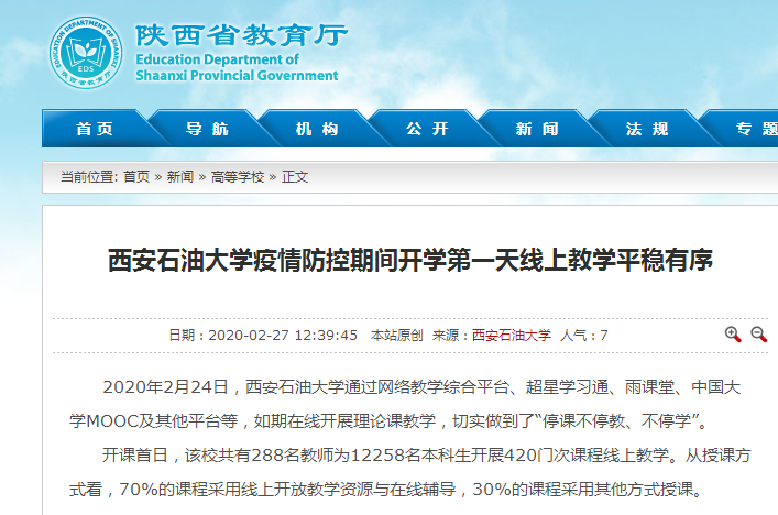 【省教育廳】西安石油大學(xué)疫情防控期間開學(xué)第一天線上教學(xué)平穩(wěn)有序