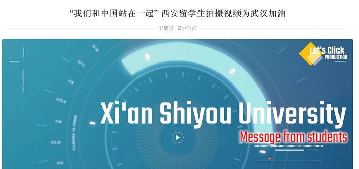 【華商頭條】西安石油大學(xué)留學(xué)生拍攝視頻為武漢加油