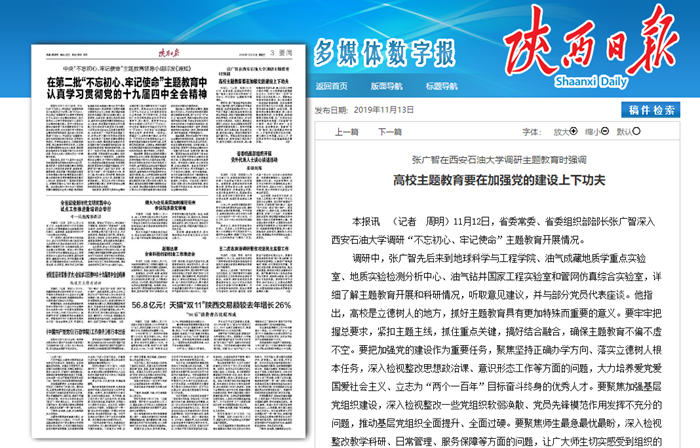 【陜西日報】張廣智在西安石油大學(xué)調(diào)研主題教育時強調(diào)高校主題教育要在加強黨的建設(shè)上下功夫