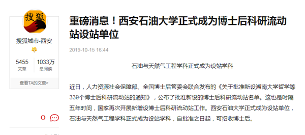近日,人力資源社會保障部、全國博士后管委會聯(lián)合發(fā)布的《關于批準新設湖南大學哲學等339個博士后科研流動站的通知》,公布了批準新設的博士后科研流動站名單。這也是時隔五年時間,國家再次開展新增設博士后科研流動站工作。西安石油大學正式成為設站單位,石油與天然氣工程學科正式成為設站學科,自批準之日起,可招收博士后。
