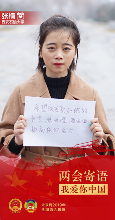 2019年3月,舉世矚目的全國“兩會”即將召開?!拔磥砭W(wǎng)”特地推出了“兩會寄語”欄目,我校黨委宣傳部推薦的三名大學(xué)生的寄語被“未來網(wǎng)”采用,與中國人民大學(xué)、廣西大學(xué)等高校大學(xué)生的寄語一起刊發(fā)。