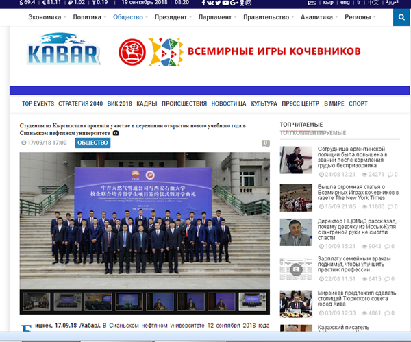 吉爾吉斯斯坦國家通訊社 9月12日,西安石油大學與中吉天然氣管道公司校企聯(lián)合培養(yǎng)留學生項目簽約儀式暨開學典禮在西安舉行。