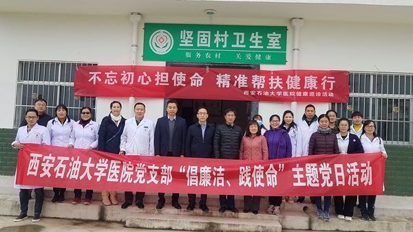 以黨支部為核心積極做好精準(zhǔn)扶貧工作。校醫(yī)院負(fù)責(zé)對口幫扶2個精準(zhǔn)扶貧單位,一個是市衛(wèi)計局指定的藍(lán)田縣輞川鎮(zhèn)甘家坪村,一個是學(xué)校對口的永壽縣永平鎮(zhèn)堅固村。黨支部帶領(lǐng)黨員和其他醫(yī)務(wù)人員把活動做到服務(wù)現(xiàn)場,支部每季度組織黨員干部赴藍(lán)田縣輞川鎮(zhèn)甘家坪村精準(zhǔn)扶貧健康幫扶義診活動,每季度赴永壽縣永平鎮(zhèn)堅固村對口的開展義診活動,幫助對口村建設(shè)標(biāo)準(zhǔn)化衛(wèi)生室。共為200余名村民進行了健康查體工作,建立了健康檔案200余份,還為對口扶貧戶提供啟動創(chuàng)業(yè)基金,為幫扶對象送去慰問金和生活必需品等。開展健康幫扶義診活動使黨員干部深入基層了解群眾疾苦,零距離診療,提高村民健康水平和生活質(zhì)量,以實際行動“抓黨建,促脫貧”,體現(xiàn)了黨員的社會責(zé)任和擔(dān)當(dāng),增強為民服務(wù)的意識,健康幫扶活動得到了群眾的好評和贊譽,以實際行動表達了在學(xué)校黨委領(lǐng)導(dǎo)下,打贏脫貧攻堅戰(zhàn)的信心和決心。