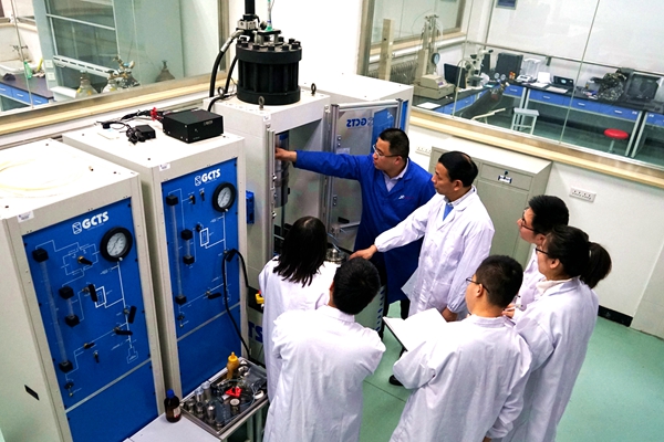 談到近年來(lái)的主要工作,周德勝教授更是打開(kāi)了話匣子。他拿出相關(guān)資料為記者介紹:“石油與天然氣工程學(xué)科是陜西省重點(diǎn)學(xué)科、陜西省特色優(yōu)勢(shì)一級(jí)學(xué)科。實(shí)驗(yàn)中心作為石油工程學(xué)院教師開(kāi)展科研工作的重要基地,為學(xué)科發(fā)展和高水平大學(xué)建設(shè)工作發(fā)揮著重要的支撐作用。近年來(lái),依托于實(shí)驗(yàn)中心的大型儀器共享平臺(tái),石油工程學(xué)院在相關(guān)研究方向上共承擔(dān)國(guó)家級(jí)科研項(xiàng)目25項(xiàng)、省部級(jí)科研項(xiàng)目24項(xiàng)、企業(yè)合作科研項(xiàng)目259項(xiàng),科研經(jīng)費(fèi)達(dá)到2.4億元。獲國(guó)家授權(quán)發(fā)明專(zhuān)利45項(xiàng)、實(shí)用新型專(zhuān)利16項(xiàng)、軟件著作權(quán)15項(xiàng)。出版專(zhuān)著21部,在核心刊物以上發(fā)表學(xué)術(shù)論文171篇(三大檢索收錄81篇)。獲國(guó)家科學(xué)技術(shù)進(jìn)步一等獎(jiǎng)1項(xiàng)、二等獎(jiǎng)2項(xiàng),省部級(jí)科技一等獎(jiǎng)4項(xiàng)、二等獎(jiǎng)1項(xiàng)、三等獎(jiǎng)2項(xiàng)。2018年5月10日,國(guó)務(wù)院學(xué)位委員會(huì)印發(fā)了《關(guān)于下達(dá)2017年審核增列的博士、碩士學(xué)位授予單位及其學(xué)位授權(quán)點(diǎn)名單的通知》,西安石油大學(xué)正式成為博士學(xué)位授予單位,石油與天然氣工程獲批一級(jí)學(xué)科博士學(xué)位授權(quán)點(diǎn)。實(shí)驗(yàn)中心憑借先進(jìn)的硬件條件和驕人的科研業(yè)績(jī),為學(xué)?!瓴ぷ饕舶l(fā)揮了重要的支撐作用?!?/p>