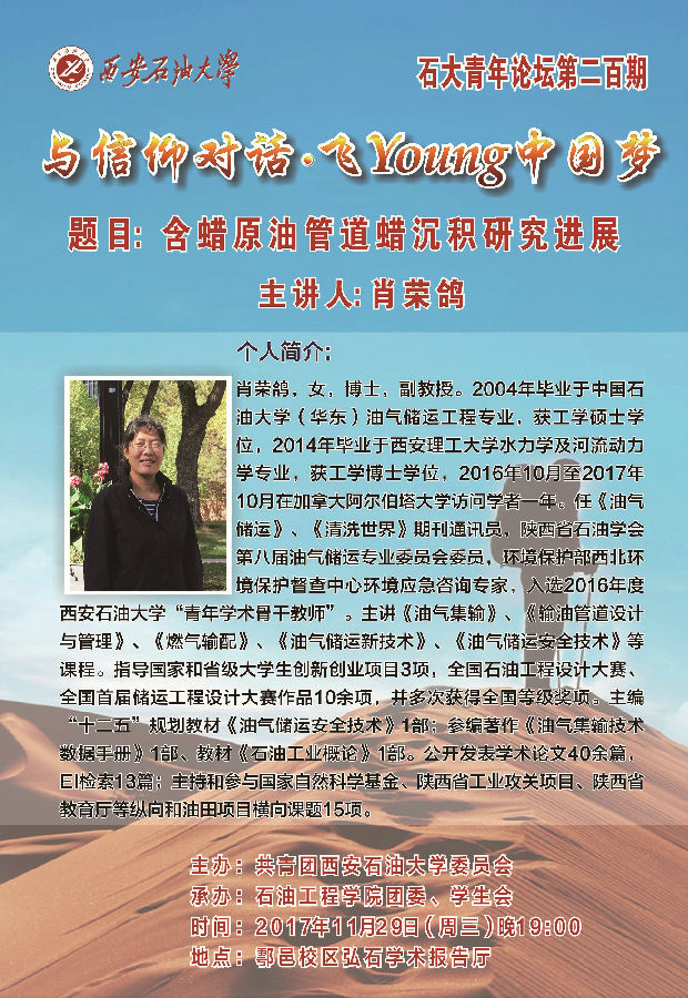石大青年論壇第200期之:含蠟原油管道蠟沉積研究進(jìn)展